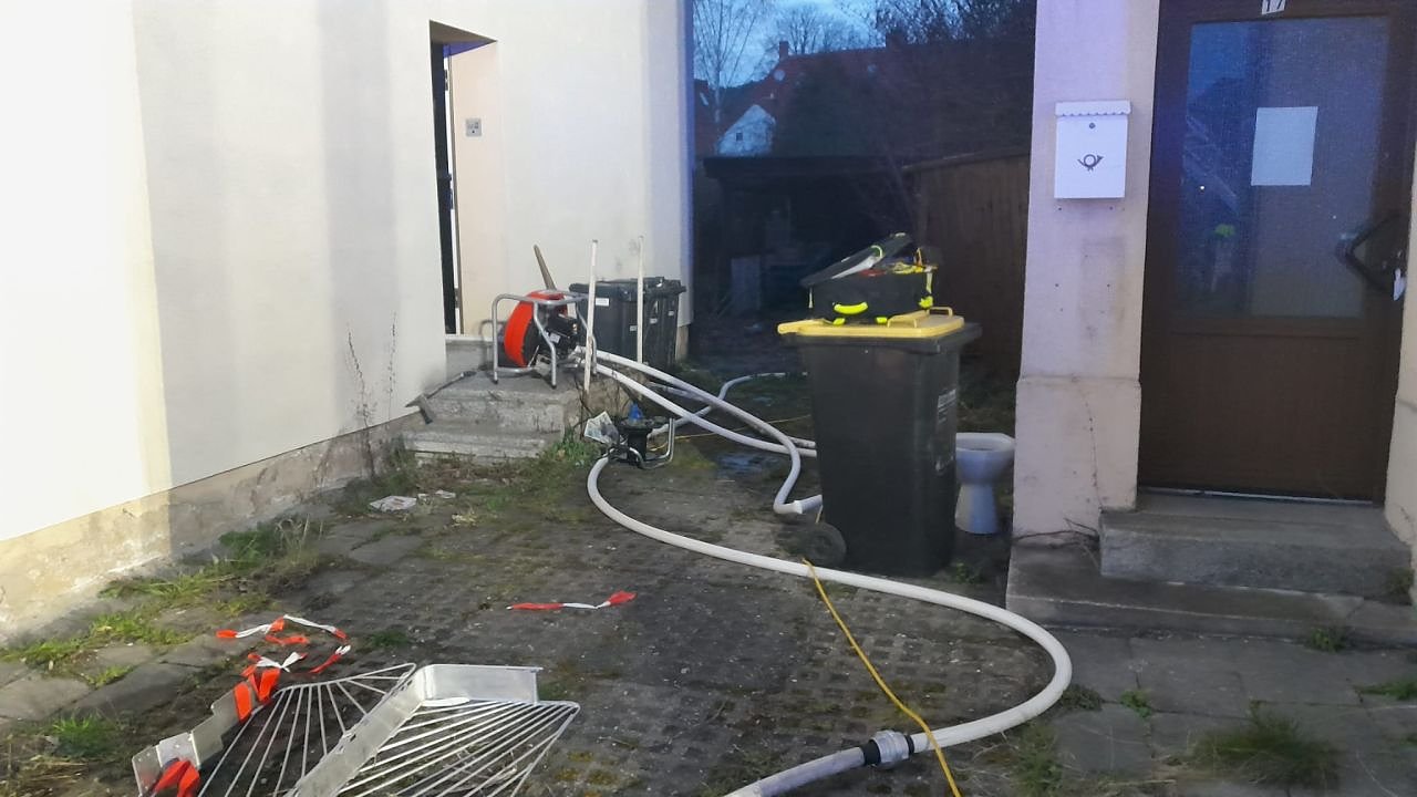 Die Kriminalpolizei geht derzeit von einer Brandstiftung aus. Zeugen hatten unmittelbar vor Brandausbruch eine männliche Person aus dem Haus laufen sehen. Die Ermittlungen hierzu dauern an. Noch am Abend kam ein Fährtenhund zum Einsatz.