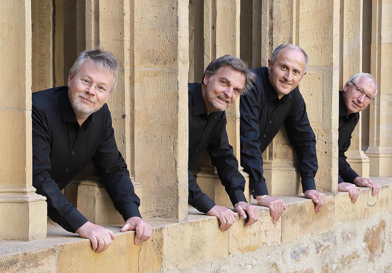 Die vier sangeskräftigen Herren entstammen dem bekannten Erfurter Augustiner-Vokalkreis und widmen sich hier in der Quartett-Besetzung dem eher unterhaltsamen Genre. Barbershop-Songs, die großes sängerisches Können voraussetzen, aber immer swingend locker bleiben, stehen im Zentrum des Programms. Auch Lieder von Liebe und Leben und jazzige Einlagen werden nicht fehlen. Zuvor hat die Klosterstube zu Kaffee und Kuchen geöffnet.