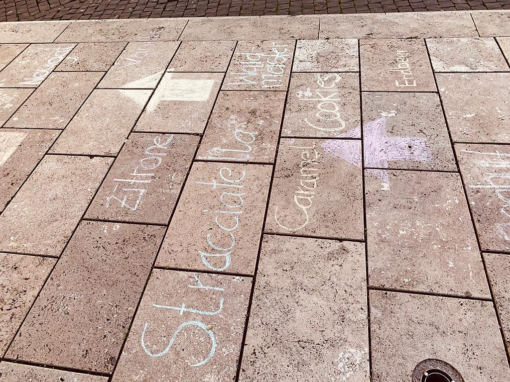 In einer auffälligen Marketingaktion machten Erfurter Studenten heute auf Initiative der DSK (Deutsche Stadt- und Grundstücksentwicklungsgesellschaft mbH), die in Persona von Max Hormann ihren Sitz in der KleinstadtManufaktur direkt am Rathaus hat, auf den Leerstand des beliebten Etablissements aufmerksam. Dazu beklebten sie die Fenster des Cafés mit kleinen Zettelchen und schrieben ihre Lieblingseissorten mit Kreide auf die Pflastersteine. Natürlich verzehrten sie auch das eine und andere Eis aus einer benachbarten Eisdiele.