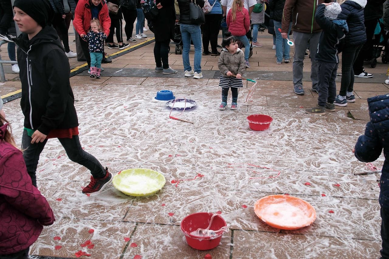 Einige durften auf die Bühne und überall flogen Seifenblasen umher. Als Susi auch noch rote Herzchen in die Luft ballerte, war das kleine