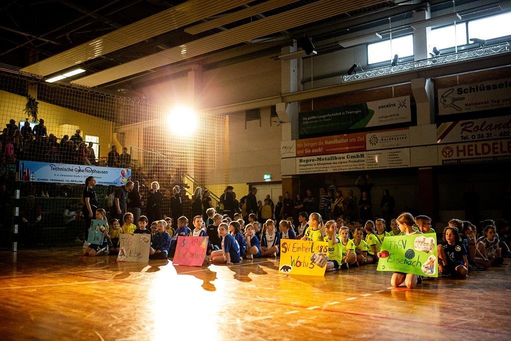 Die bis auf dem letzten Platz ausgefüllte Nordhäuser Ballspielhalle wackelte vor Begeisterung. Grund dafür war die absolute Stimmungslage beim F-Jugend Turnier des Nordhäuser SV – S.K.S. Ran an den Ball -. Die vierte Auflage in dieser Form toppte die Erwartungen der vielen Zuschauer und Aktiven. Angereist waren 19 Mannschaften aus 4 Bundesländern. Die 200 kleinen Handballer/innen standen sich die in 3 Kategorien gegenüber.