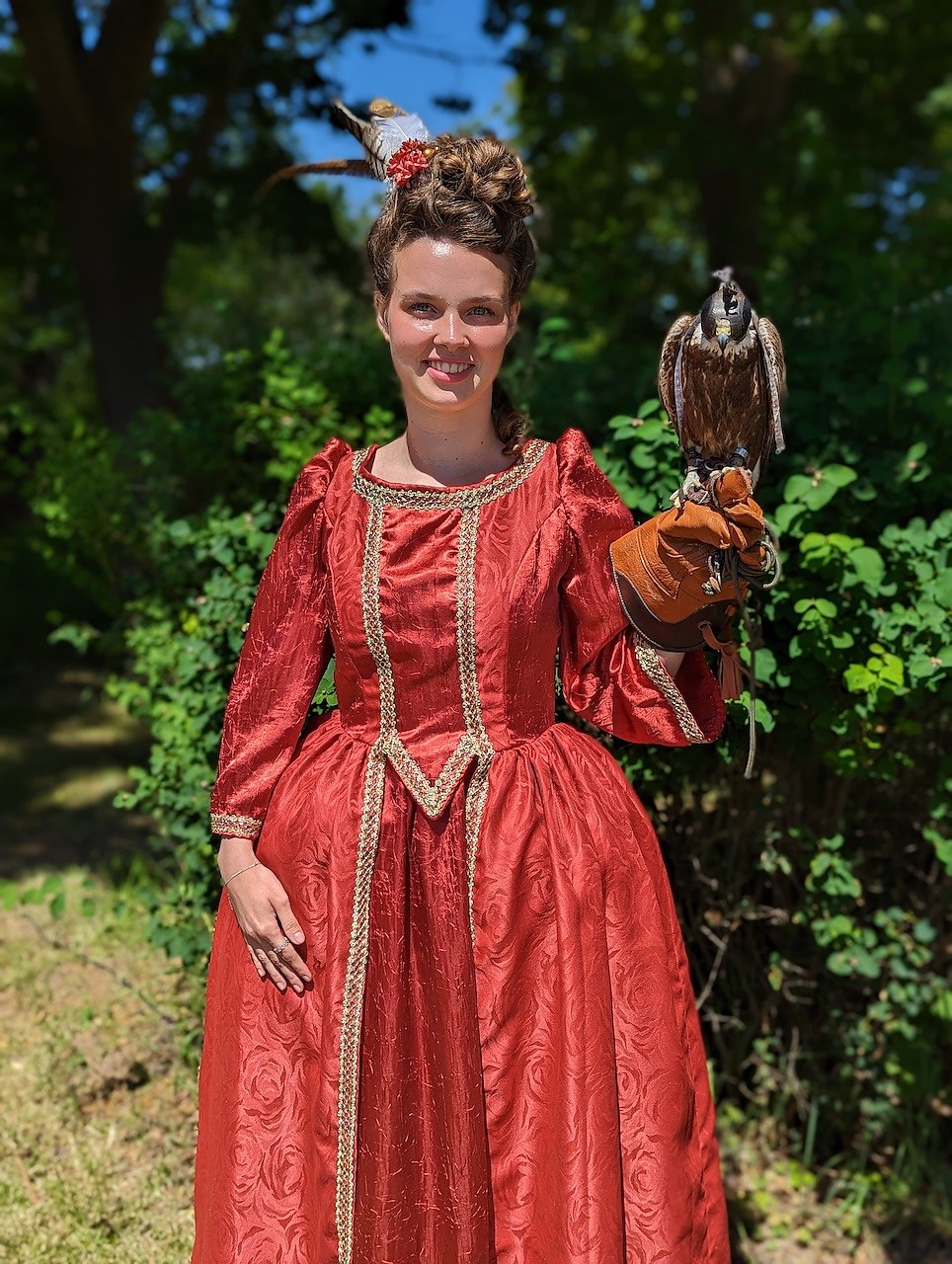 v.r. Fürstin Wilhelmine-Christiane (verkörpert von Michelle Bose) und ihr Gemahl Fürst Christian Wilhelm (verkörpert von Matthias Mitteldorf) präsentierten sich mit einem echten Falken auf dem 20. Residenzfest in Sondershausen (Foto: J. Skara)
