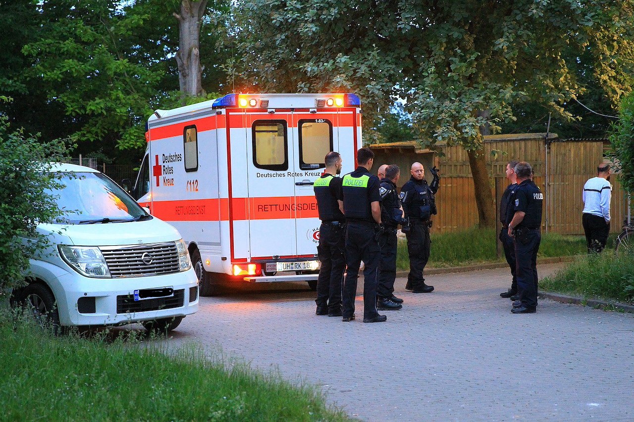 Von der Landeseinsatzzentrale der Polizei wurde auf Anfrage bestätigt, dass es am Abend eine Auseinandersetzung gegeben habe. Die Kollegen vor Ort seinen mit der Aufklärung beschäftigt. Im Polizeibebricht heißt es: In einer Gemeinschaftsunterkunft für Geflüchtete kam es am Dienstagabend zu einer Streitigkeit zwischen zwei Männern. Der Streit gipfelte gegen 20.45 Uhr in eine tätliche Auseinandersetzung, wobei ein 26-jähriger leicht am Hals verletzt wurde.