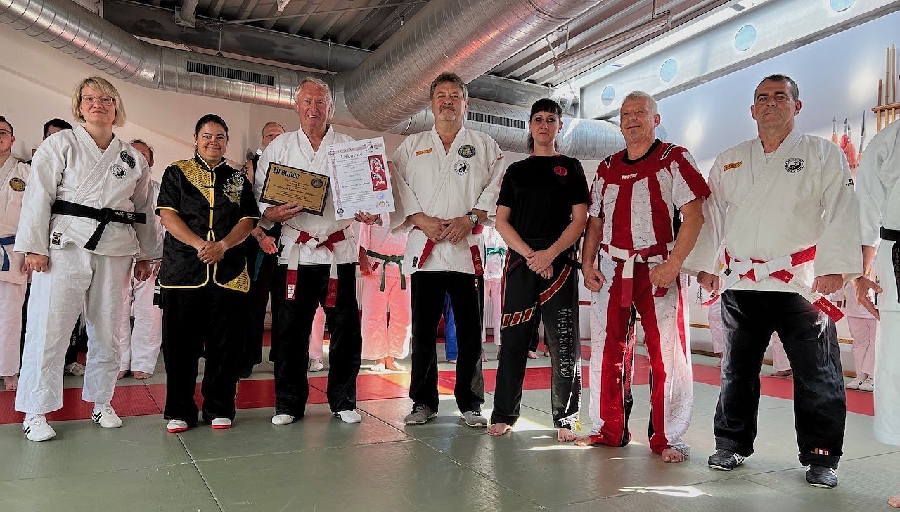 Zu Beginn dieser Veranstaltung stand eine schöne Überraschung für Alfred Horn an, er wurde vom Landesverband für sein 30-jähriges Kampfkunstjubiläum geehrt.
