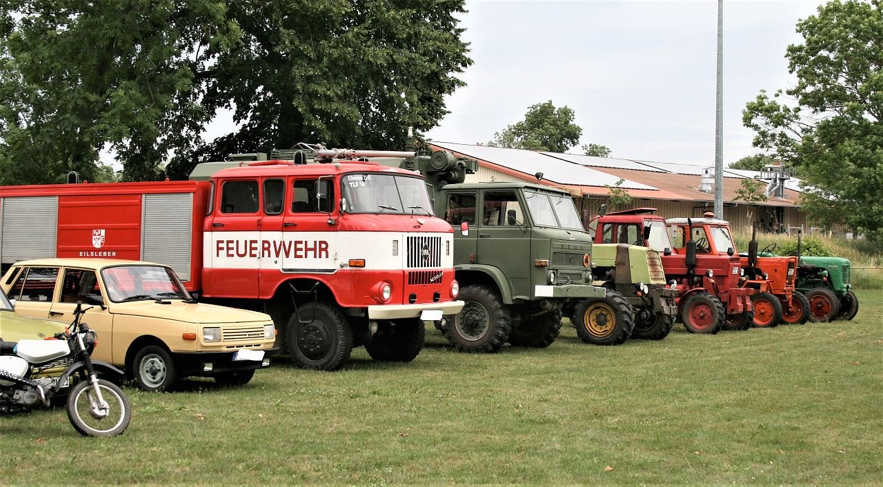 Ergänzt wurde das Fest durch eine kleine Ausstellung von einigen Fahrzeugen aus vergangenen Zeiten. Einige Traktoren, ein LO, ein W 50, ein B1000, Trabant 601, Wartburg 353 und einige Simson- Mopeds konnten bestaunt werden.