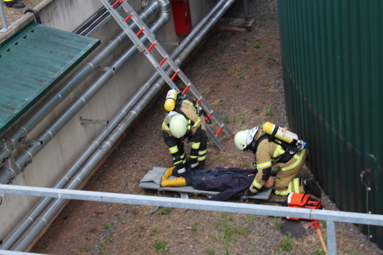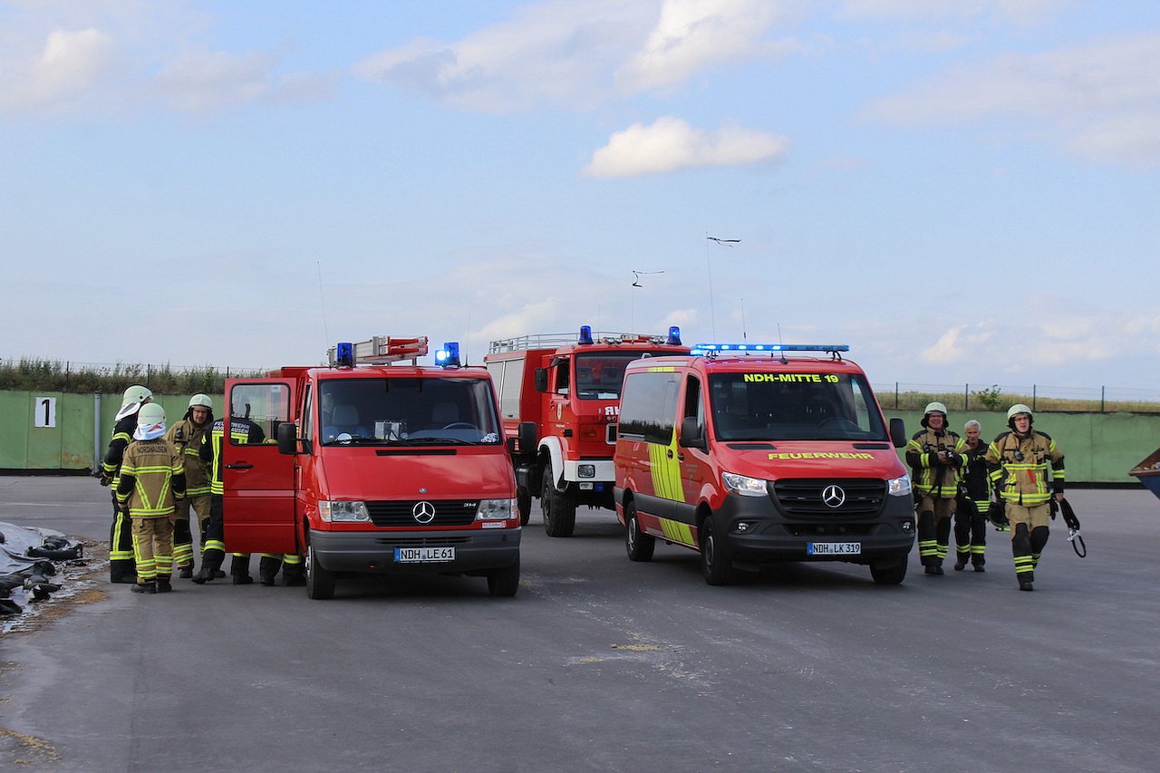 Simuliert wurde der Brand an der Entschwefelung mit verletzten Personen. Es wird angenommen, dass sich der Brand auf benachbarte Anlagen und Gebäude ausbreitet. Durch die Feuerwehr sollen die Menschenrettung und die Brandbekämpfung geübt werden. Zur Bekämpfung müssen unter anderem ca. 250 Meter Schlauch bis zu einem nahen Hydranten ausgelegt und etwa 35 Kameraden koordiniert werden. Zur Zufriedenheit des Einsatzleiters, der sich dennoch einige Notizen machte, denn es geht imme rauch noch besser und solch eine Übung wäre ja dafür da, das alle etwas lernen.