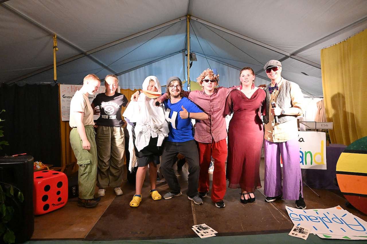 Am Abend steigt die alljährliche Hitparade. Einige Stars begrüßen wir im großen Zelt und singen bis zum Sonnenuntergang.