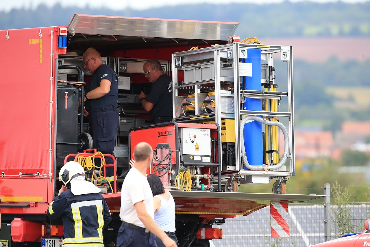 Insgesamt kamen bei der Untersuchung auf eine Feld in der Nähe der Gemeinde Berga 98 Einsatzkräfte und 26 Fahrzeuge zum Einsatz. Die Strahlungen lagen nach Auskunft der Leitstelle in Sangerhausen jedoch immer im Toleranzbereich, so dass zu keiner Zeit eine Gefahr für die Bevölkerung bestanden habe.