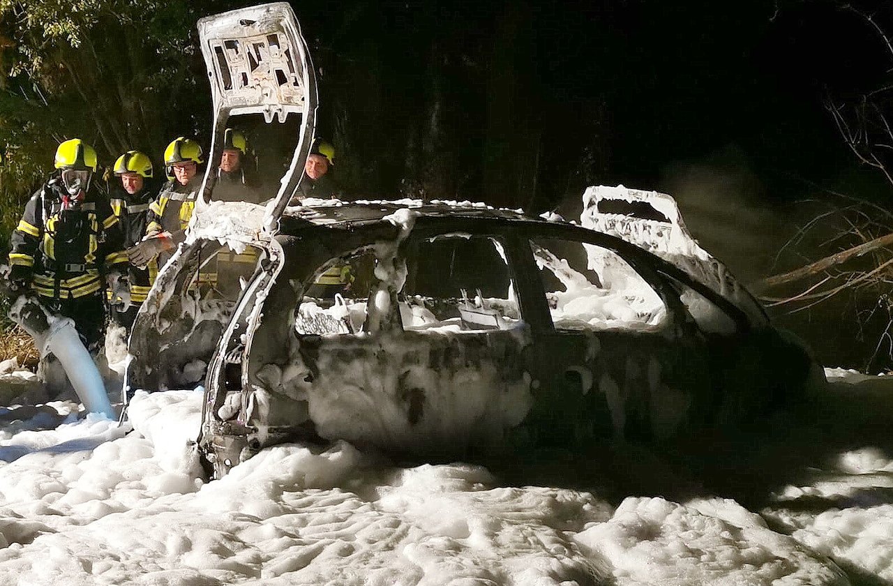 Trotz des schnellen Eingreifens der Feuerwehr brannte das Fahrzeug vollständig aus.