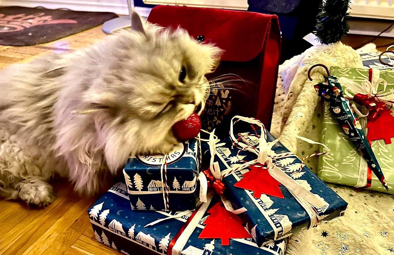 Wir erhielten folgenden Text zum Foto: Willy und die Weihnachtsgeschenke.