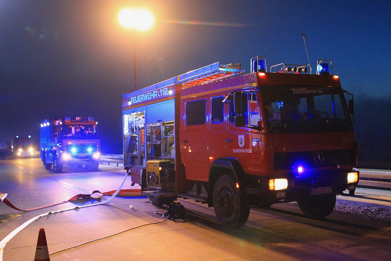 Durch die zügig eintreffenden Einsatzkräfte der Feuerwehr wurde die Vollsperrung der A 38 in Fahrtrichtung Göttingen veranlasst und die Löscharbeiten eingeleitet. Zusätzlich wurde eine Verkehrsableitung an der Anschlussstelle Heringen eingerichtet.