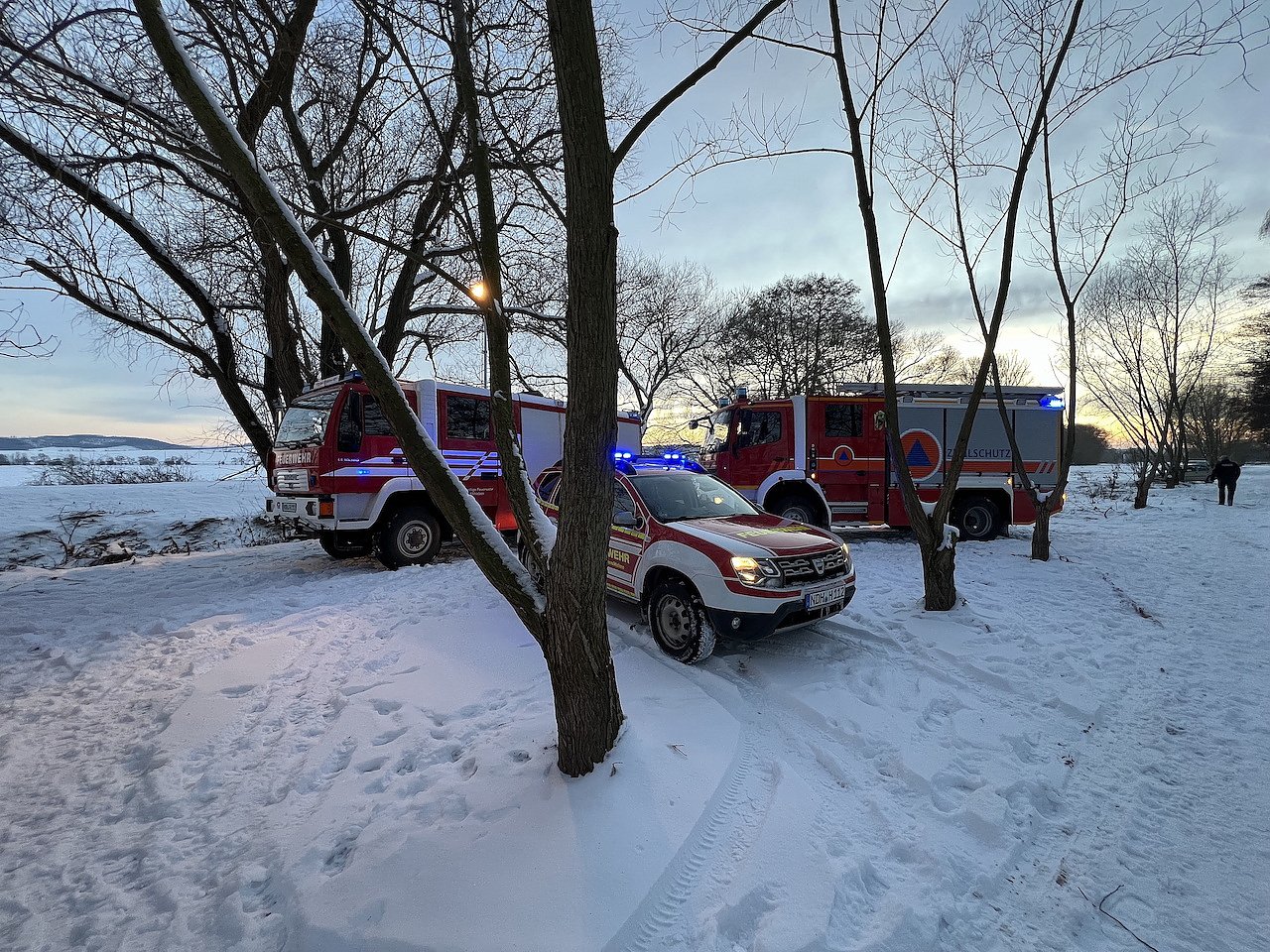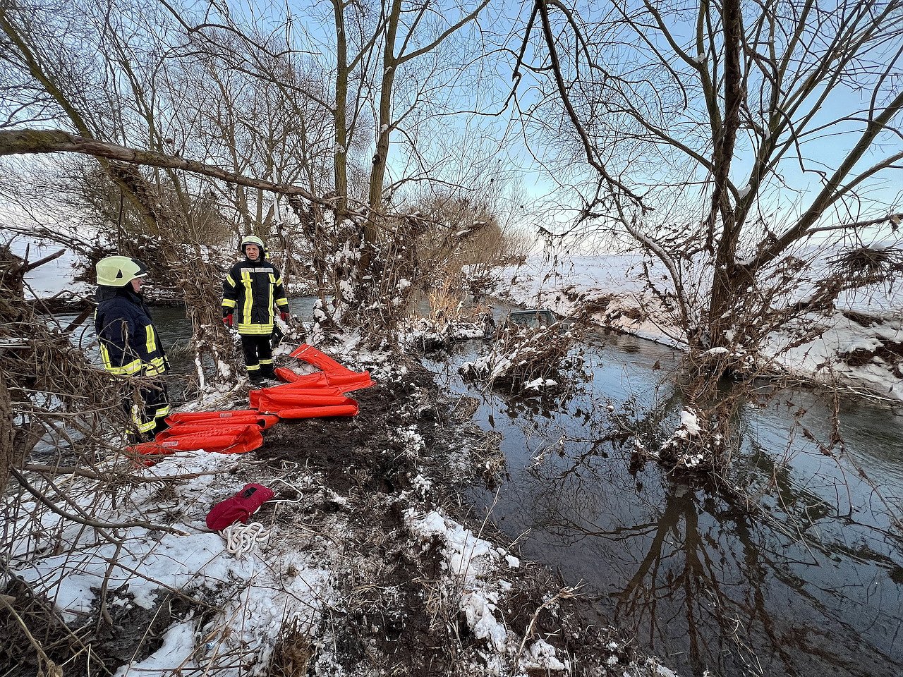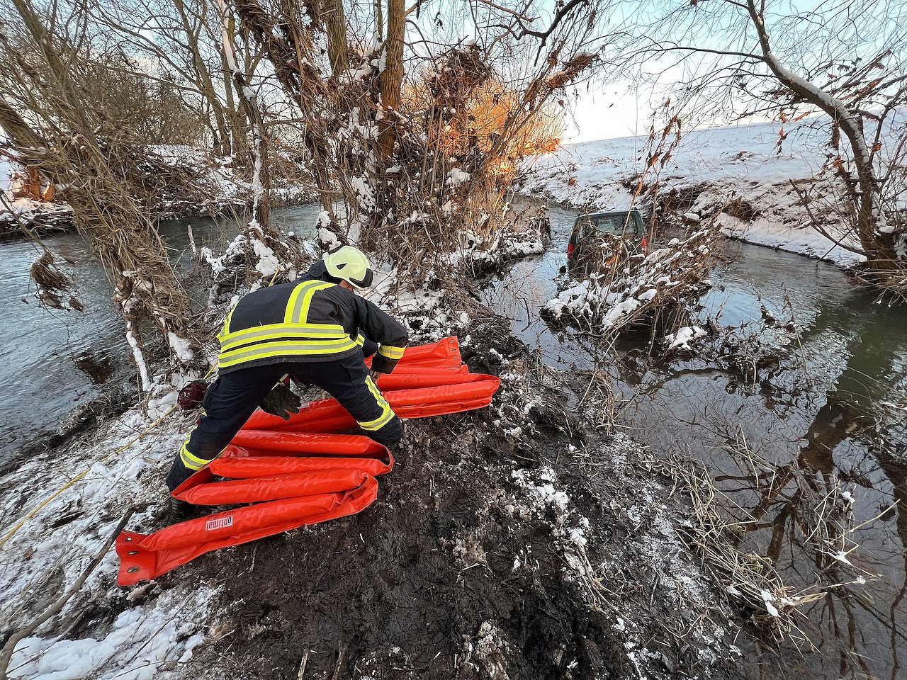 Glück für den Jäger: Ein Zeuge hatte den Unfall auf der Ferne beobachtet und die Rettungskräfte alarmiert. Die konnten den völlig unterkühlten Autofahrer schwer verletzt aus dem Fluß retten und in ein Krankenhaus bringen. Die Fahrzeugbergung gestaltet sich schwierig, wie von den Einsatzkräften zu erfahren war. Auch die Untere Wasserbehörde erschien am Unglücksort.
