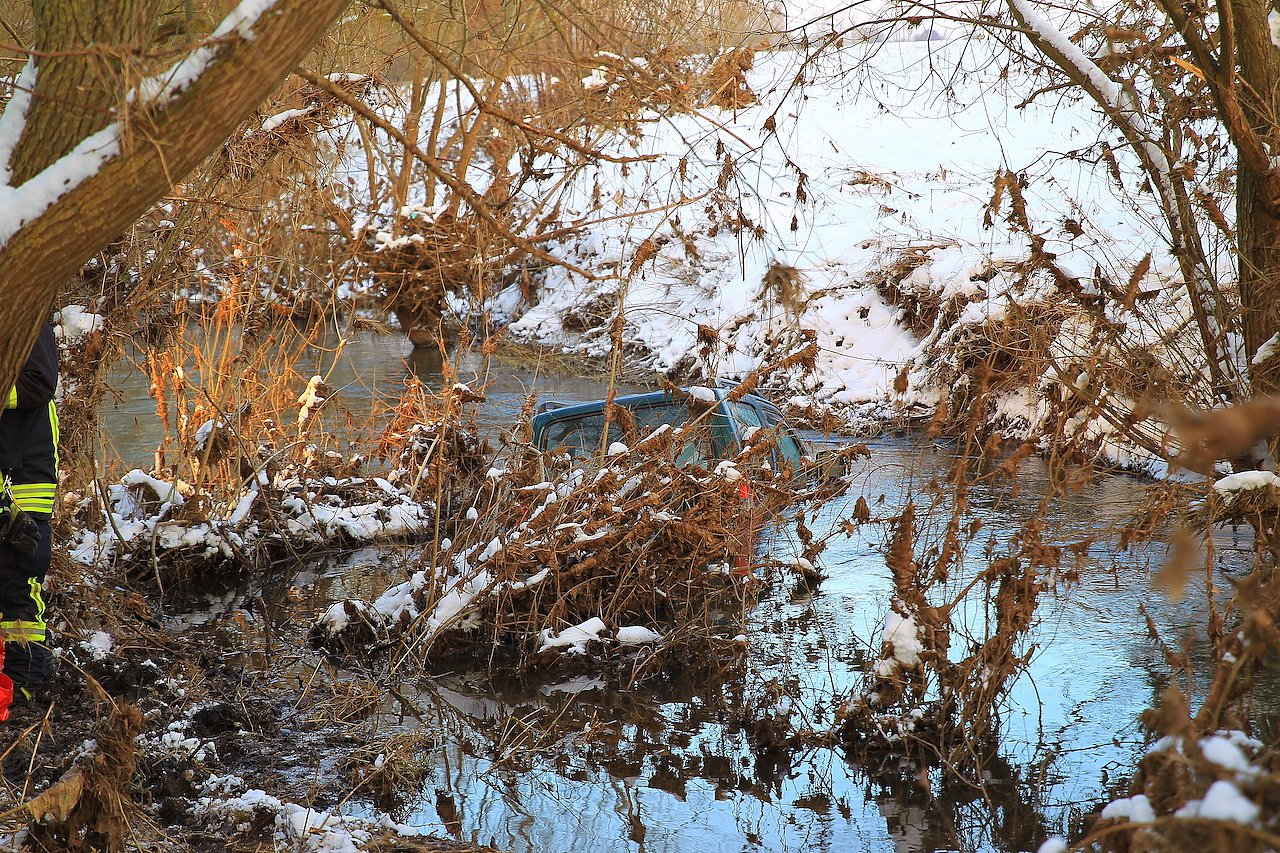 Ein 89-jähriger Jäger war mit seinem Suzuki Jimny auf unbefestigtem Untergrund unterwegs, als er auf dem schneebedecktem Boden plötzlich ins Rutschen kam und mit seinem Auto den Hang hinab und in den Fluß stürzte. Das Fahrzeug versank sofort zur Hälfte im Wasser. Der Rentner konnte zwar das Auto mit Müh und Not selber verlassen, doch gegen die Fluten kam er nicht an.
