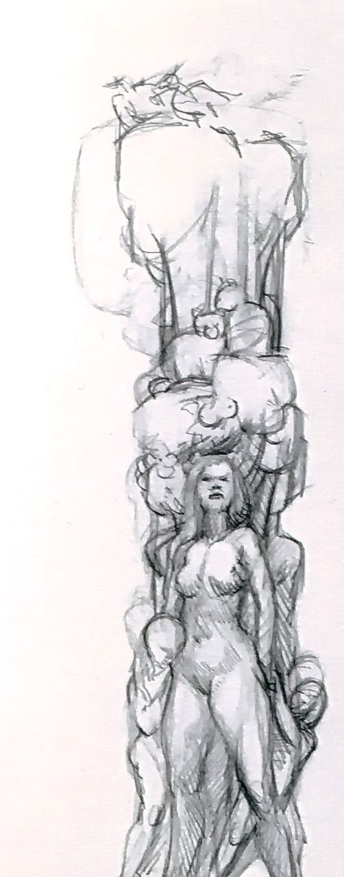 Einer der Bleistiftentwürfe für die Plastik in Nordhausen Nord, entnommen dem Buch Null Prozent Tarnung - Lothar Rechtacek, Berlin 2013 (Foto: Heidelore Kneffel)