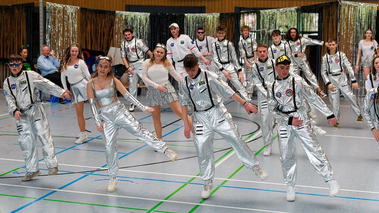 Einen nicht ganz so ernstgemeinten Gegenpart boten die 11er, die sich traditionell einen Wettstreit mit den älteren Schülern lieferten. Unter ihrer Parole Ihr fliegt zu denen Sternen – wir erobern ganze Galaxien. boten sie als farbenfrohe Aliens einen Hingucker und sorgten für Stimmung.