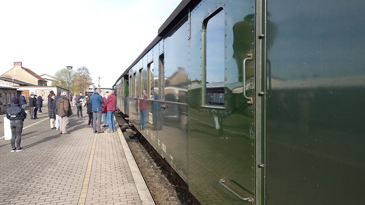Eine Minute nach 9 Uhr wurde heute der Sonderzug mit den beiden historischen Wagen in Nordhausen-Nord auf die Reise geschickt. Mit an Bord viele Schmalspurenthusiasten und der Geschäftsführer der Nordhäuser Verkehrsbetriebe, Torsten Schwarz. Der wird an der Jubiläumsveranstaltung 125 Jahre Harzquer- und Brockenbahn auf dem Brocken teilnehmen.