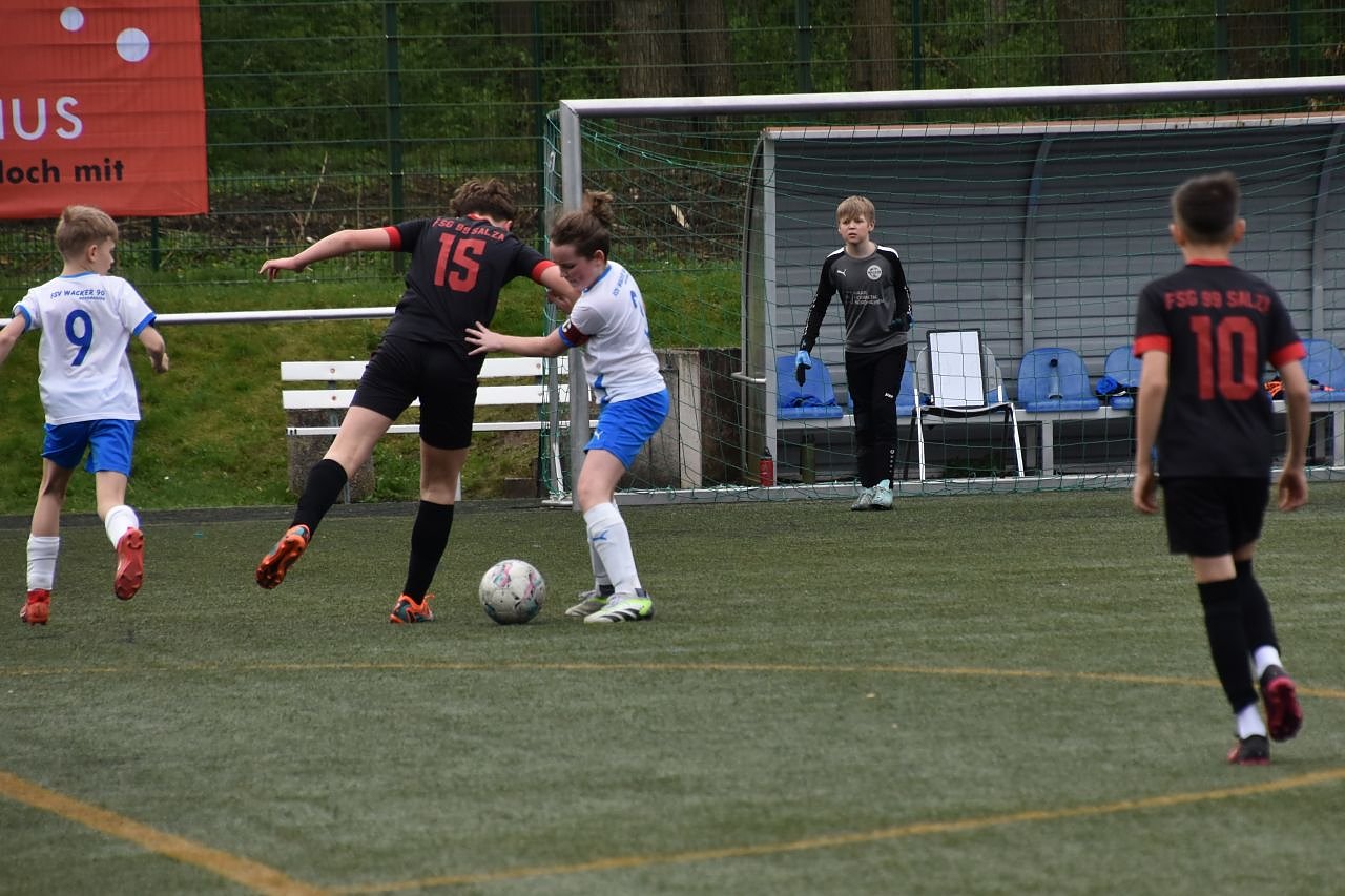 Ein Freistoß aus dem Mittelfeld setzte man mit dem anschließenden Kopfball ebenfalls am Tor vorbei. Ein zentral ins Mittelfeld abgewehrter Ball nahm in der 46. Minute Leon Rassloff an und erzielte mit einem Distanzschuss den 2:1 Anschlusstreffer für Salza. Es dauerte keine 2 Minuten, da klingelte es erneut im Wacker-Tor. Nach Ballverlust im zentralen Mittelfeld kurbelte Noah Findeisen allein auf’s Wacker-Tor zu und ließ Jakob Winter keine Abwehrchance zum 2:2 Ausgleich. Auf der anderen Seite hatte 2 Minuten später Mieron John die erneute Wacker-Führung auf dem Fuß, als er nur noch den Salza-Torwart vor sich hatte, aber der Ball zu weit vom Fuß sprang, sodass der Torwart klären konnte. Ein Fehlpass in der zentralen Abwehr nutzten die Salzaer durch Johann Wolfsteller im 2 gegen 1 zur 2:3 Führung. Auch in der Nachspielzeit verloren die Wackeren den Ball im rechten Mittelfeld. Salza nun in Überzahl stellte das Endergebnis auf 2:4 durch Julius Joch her.