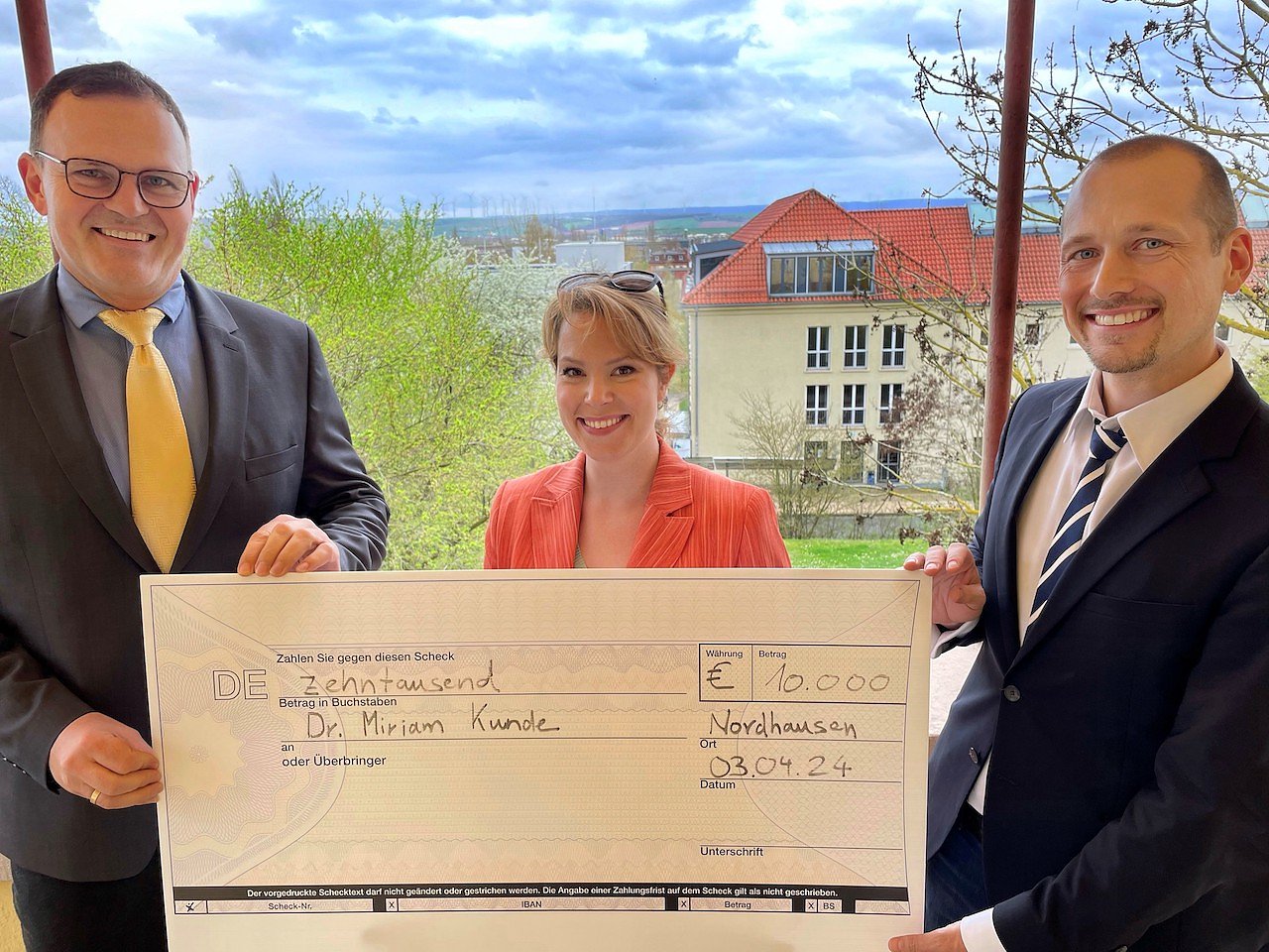 Zum offiziellen Start des Projekts mit Beginn des Sommersemesters 2024 an der Hochschule Nordhausen überreichte der Präsident der Hochschule Prof. Dr. Jörg Wagner das Preisgeld symbolisch an die Preisträgerin.