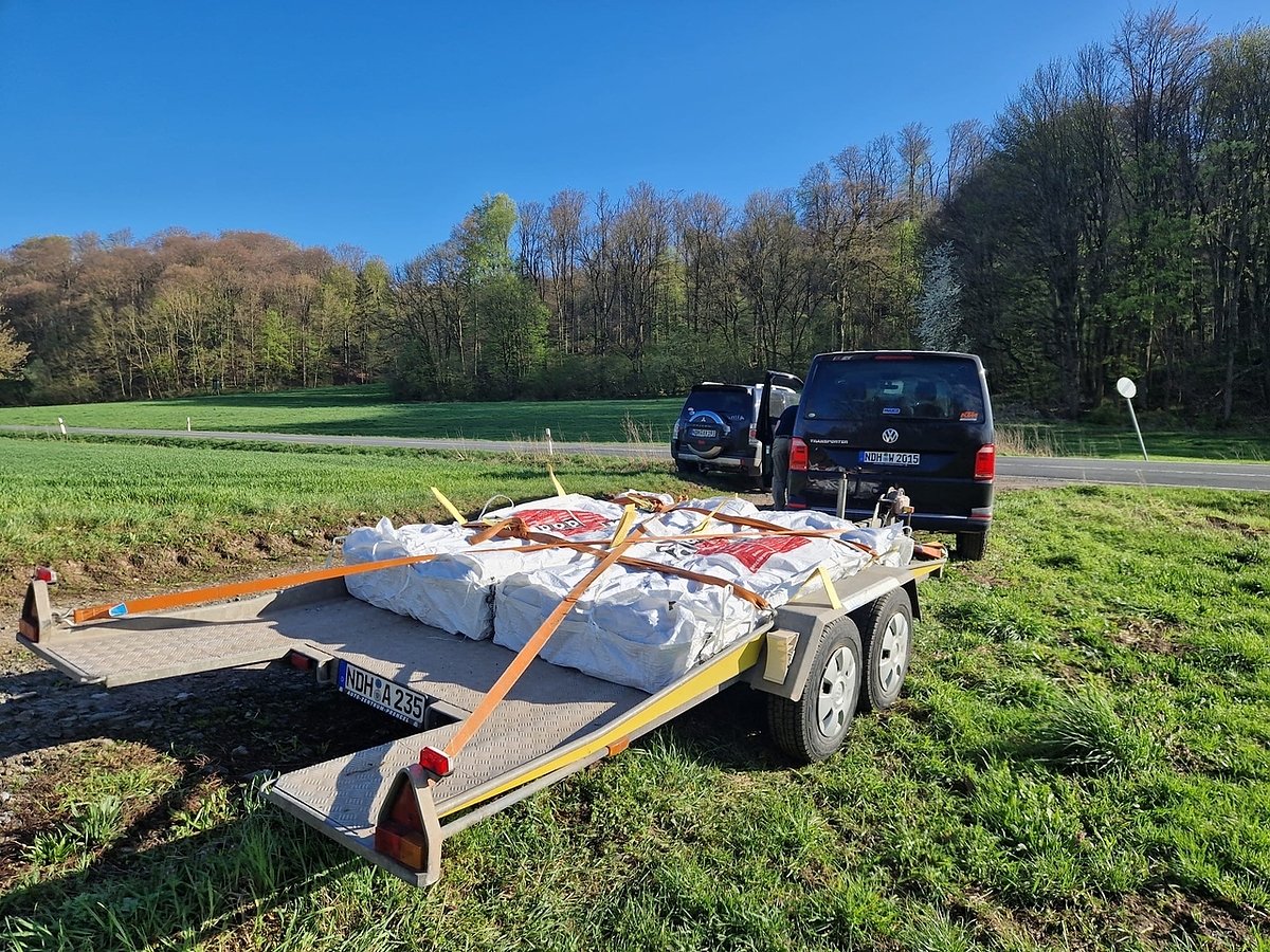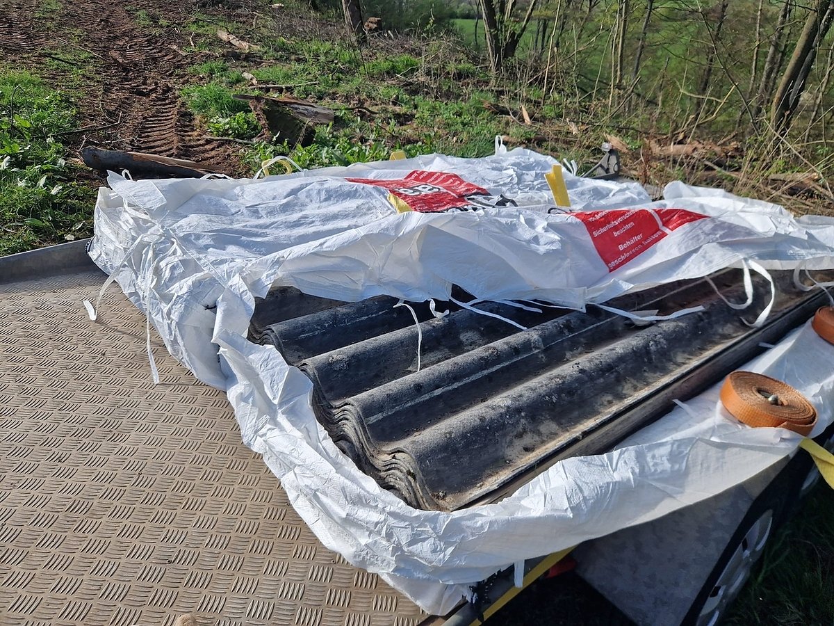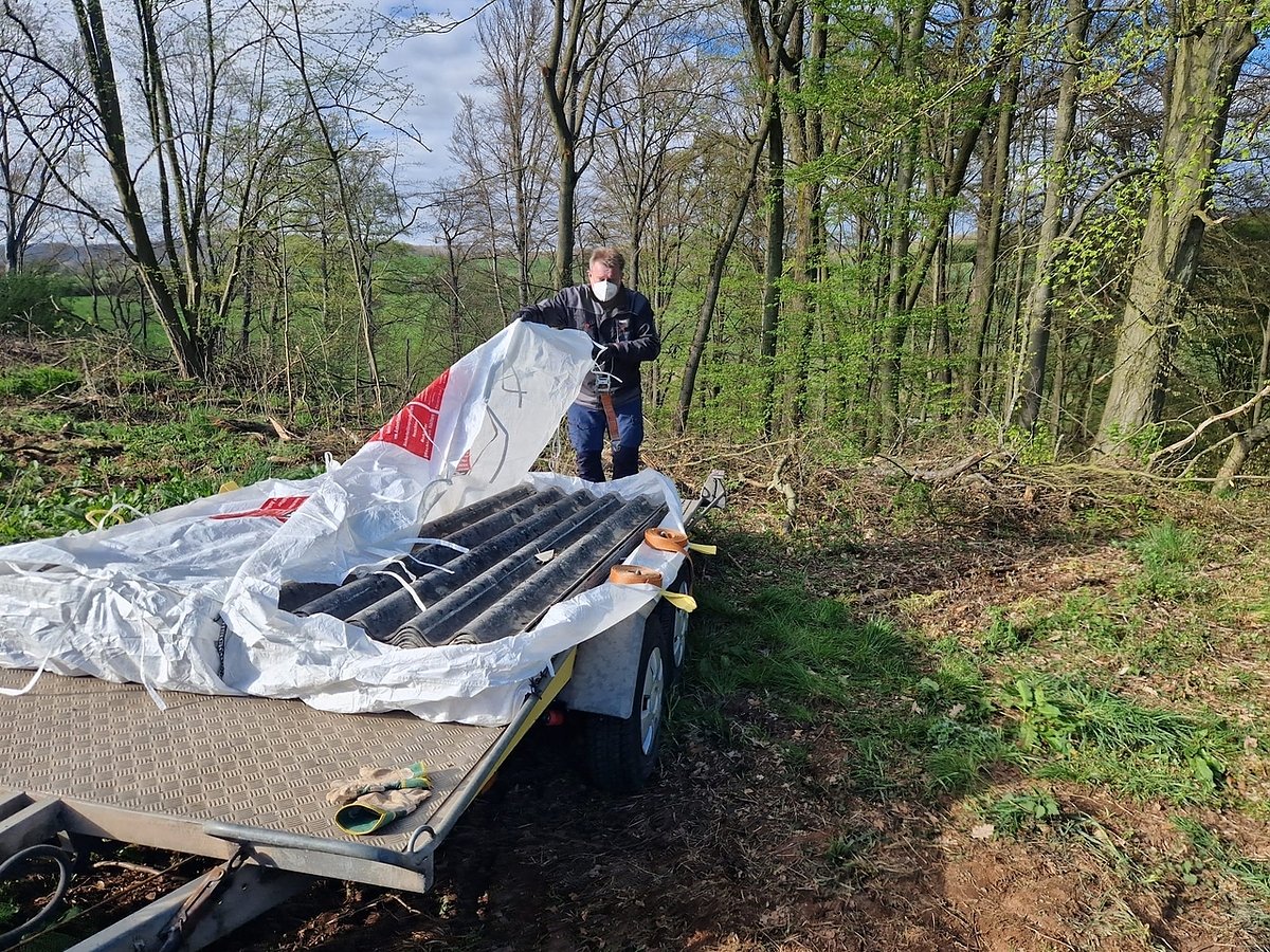 Spontan wurde der Entschluss gefasst, diese, diesmal sach- und fachgerecht, zu entsorgen. Schnell waren die für den Transport und Ablagerung zugelassenen Big Packs besorgt sowie Hänger und Zugfahrzeug organisiert, so dass am Freitag voriger Woche die Platten aufgeladen und zur Entsorgung auf die Deponie nach Nentzelsrode gebracht werden konnten.