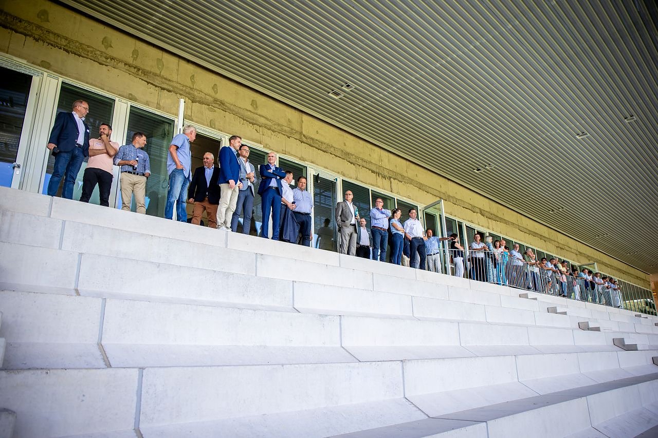 In der zukünftigen Lounge des Stadions im ersten Stockwerk des neuen Tribünengebäudes begrüßten Wacker-Präsident Torsten Klaus, KSB-Chef Gert Störmer sowie die Bauherren der Servicegesellschaft (Geschäftsführer Gunnar Reuter) und sein Chef, Landrat Matthias Jendricke die Gäste. Torsten Klaus betonte, dass er sich über die gute Zusammenarbeit mit der Service GmbH freue und den Albert-Kuntz-Sportpark gern auch für andere Feiern und Veranstaltungen offen halten möchte.