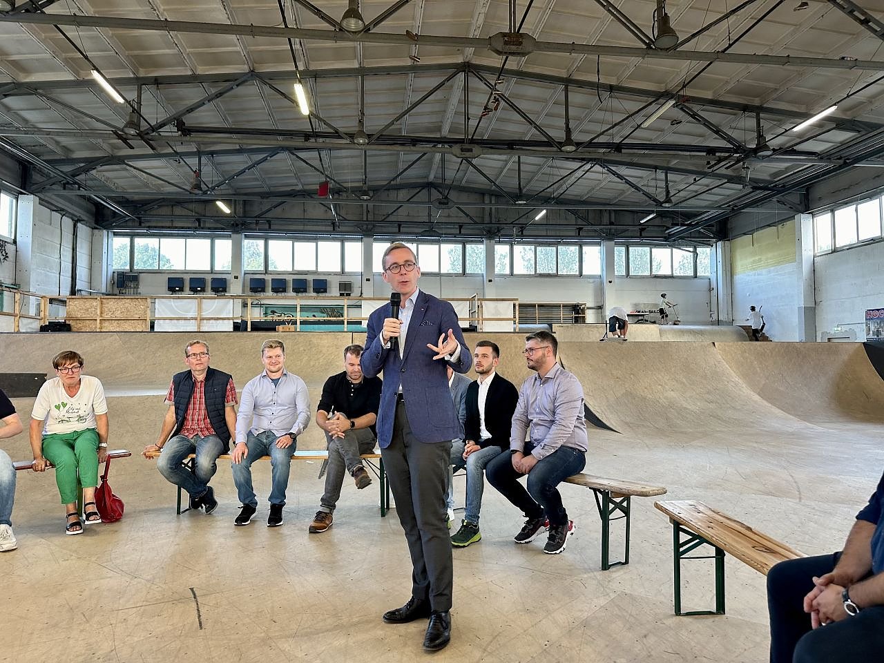 Die Veranstaltung bot den Anwesenden außerdem die Gelegenheit, in lockerer Atmosphäre direkt mit den beiden Politikern ins Gespräch zu kommen. Auch das Thema Jugendkultur und die Bedeutung von Freizeitangeboten wie der Skatehalle im Jugendzentrum XXL wurden thematisiert, was die Bedeutung solcher Einrichtungen für die Gemeinschaft unterstrich.