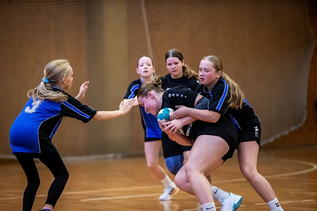 Auch bei den Mädchen der Wettkampfklasse III wurde um jeden Ball gekämpft. In einer Dreiergruppe konnte sich das Schiller-Gymnasium sowohl gegen das Herder-Gymnasium als auch gegen die Regelschule Löwentor durchsetzen und damit den Turniersieg feiern. Die Spielerinnen zeigten nicht nur taktisch anspruchsvollen Handball, sondern auch eine beeindruckende Teamleistung.