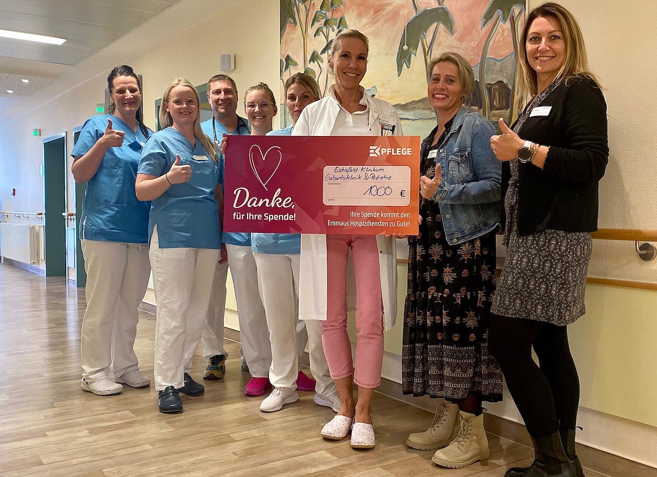 Die Geburtsklinik und Pädiatrie des Eichsfeld Klinikums freuen sich, eine Spende von 1.000 Euro an die Emmaus Hospizdienste übergeben zu können...