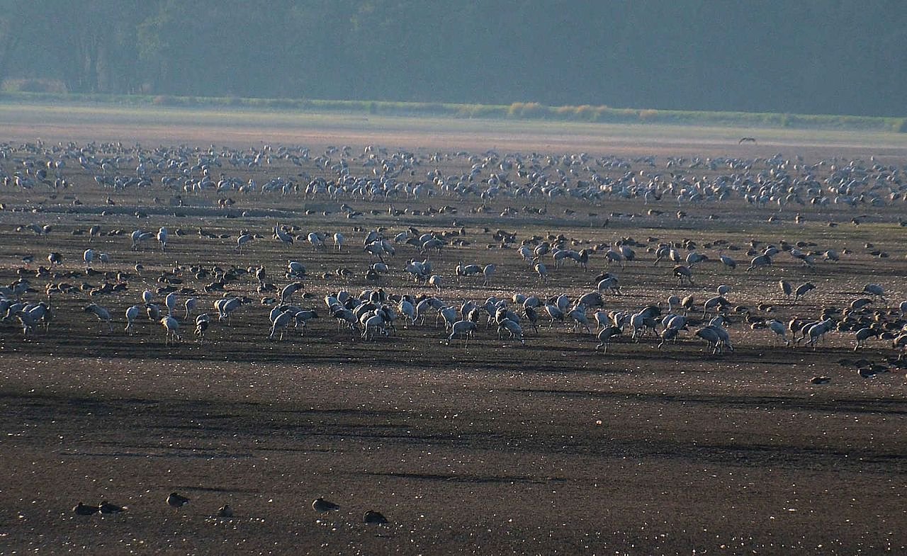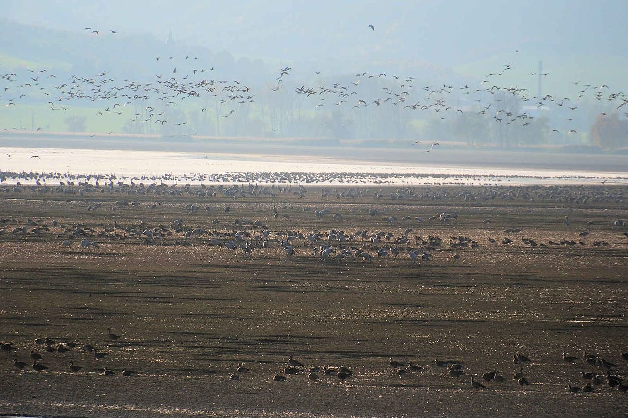 Viel fremde Kennzeichen sah man auf dem Parkplatz. Der Ranger erklärte viele Neugierigen diese Naturerscheinung. Am Dienstag sollen über 37.000 Vögel am Stausee gewesen sei. Aber ist ein ständiges Kommen und Gehen.