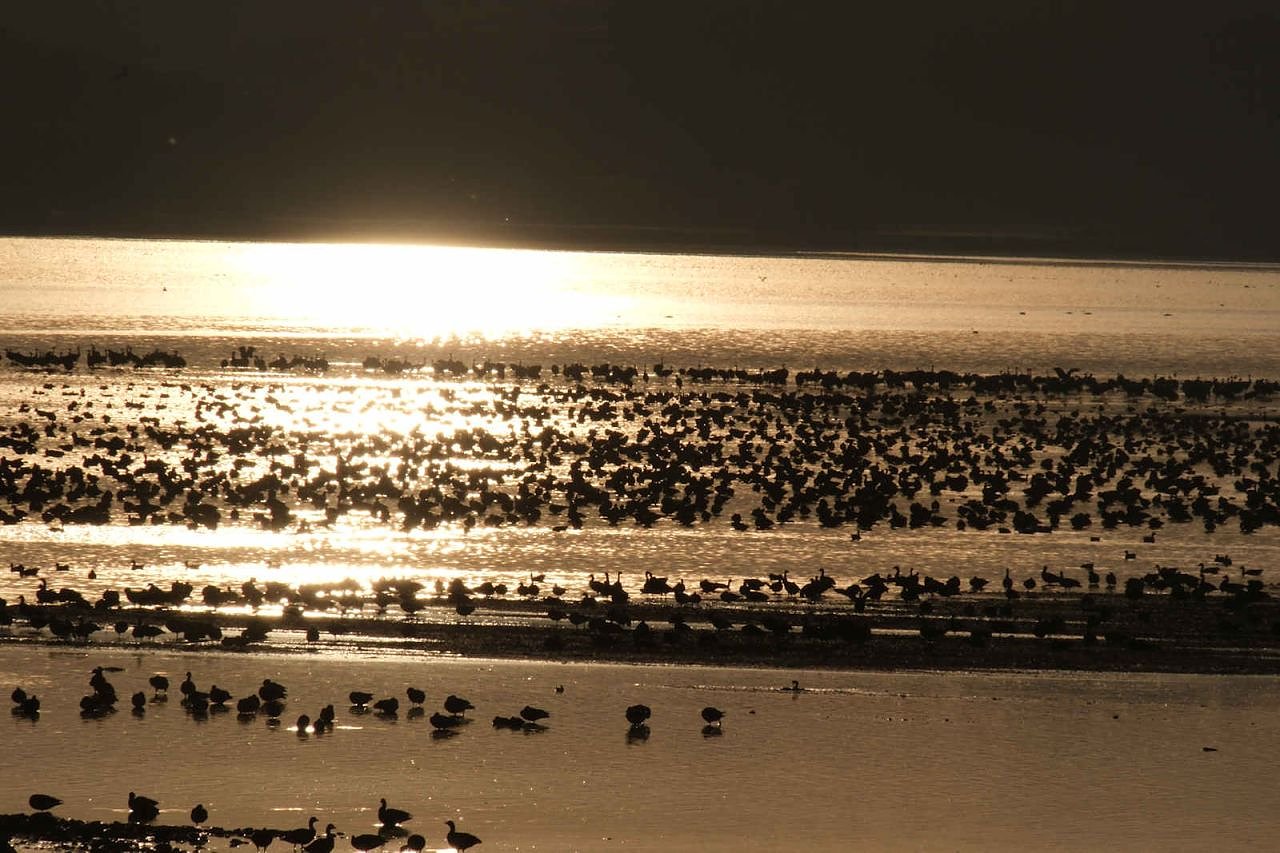 Die Einen fliegen weiter, andere kommen gerade an. Das Schilf, das durch das Hochwasser an der Staumauer angespült wurde, hat man verbrannt und mit Feuerwehrschläuchen abgesaugt.