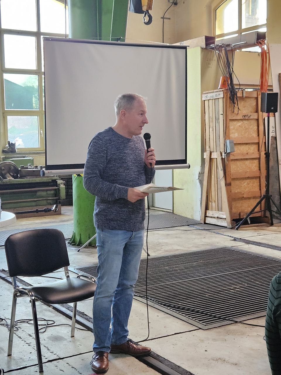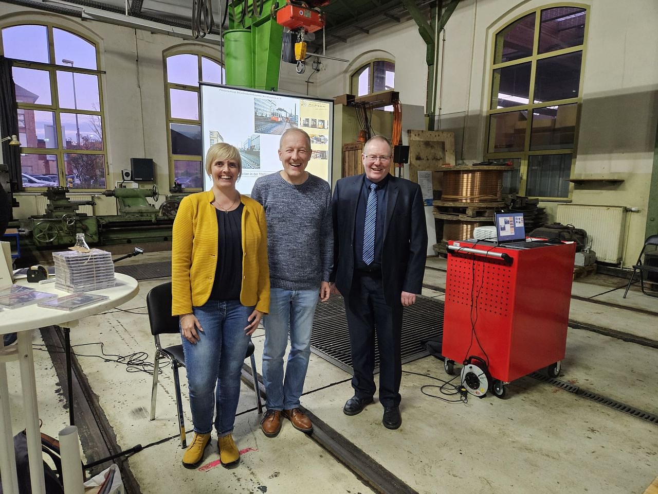 Zum Abschluss der Veranstaltung führte Stefan Länger, Schriftführer des Vereins und Betriebsleiter Straßenbahn bei der Verkehrsbetriebe Nordhausen GmbH, noch durchs Depot. Er informierte die Teilnehmer*innen, wie die Dienstpläne entstehen, und dass – anders als bei anderen Verkehrsbetrieben – in Nordhausen so gut wie keine Fahrten ausfallen. Diskutiert wurde auch über Themen wie die Zukunft der bundesweit einmaligen Nordhäuser Straßenbahnen, die sowohl mit Strom als auch mit einem Dieselaggregat angetrieben werden können.