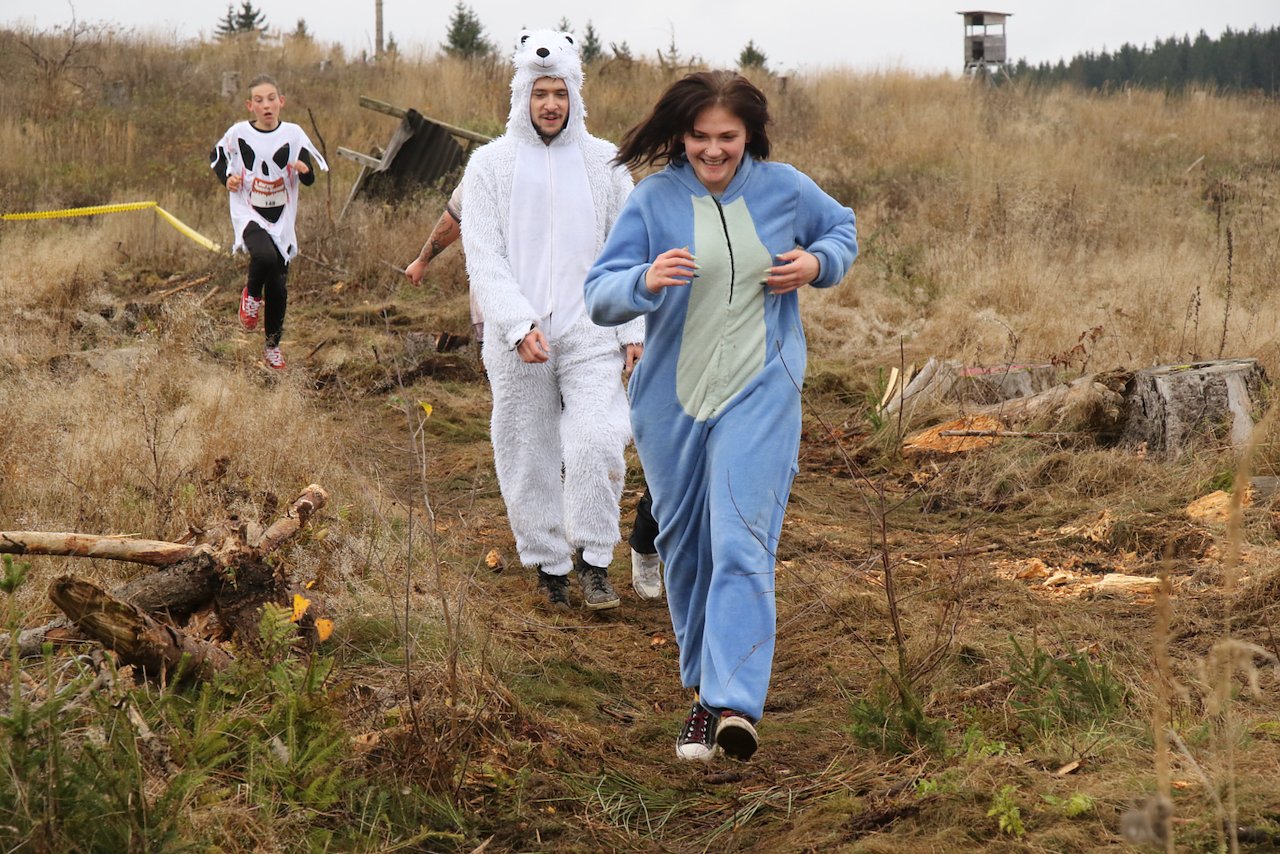 Heute führten die Strecken über zwei und vier Kilometer durchs Gehölz, als erster ging Profi-Läufer Thomas Münster durch das Ziel, gefolgt von Simon Günther und Christian Gebhardt. Ausgezeichnet wurde aber nicht nur die Laufleistung, sondern auch die beste Kostümierung.