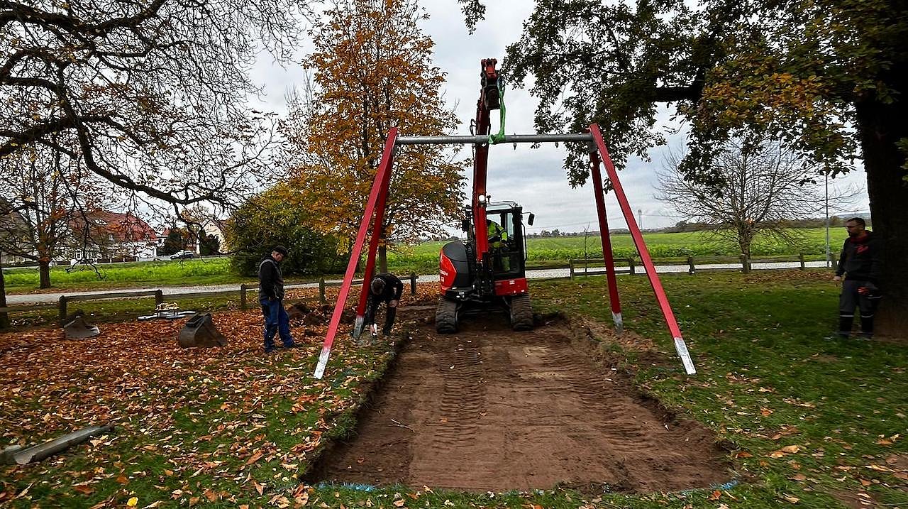 Die Kirmesburschen haben heute das bevorstehende Wochenende eingeläutet, indem sie auf dem Schützenplatz Spielplatz eine neue Schaukel errichtet haben.