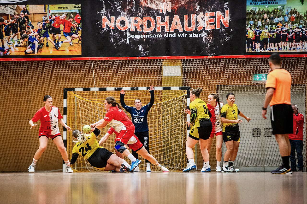 Kraft reichte nicht: 45 Minuten (15:16) spielte Nordhausen gut mit und hielt die Partie offen. Für die letzten 15 Spielminuten reichte die Kraft nicht mehr aus und sie mussten sich im Schlussspurt Erfurt klar geschlagen geben. Dabei ist das Ergebnis am Ende ein wenig aus den Fugen geraten. Sie wollten die Partie aus dem Feuer reißen. Dabei häuften sich die technischen Fehler. Erfurt war nicht besser an diesem Tag, sie waren effektiver. Sie warteten auf Fehler und nutzten diese zum Doppelpunktgewinn.