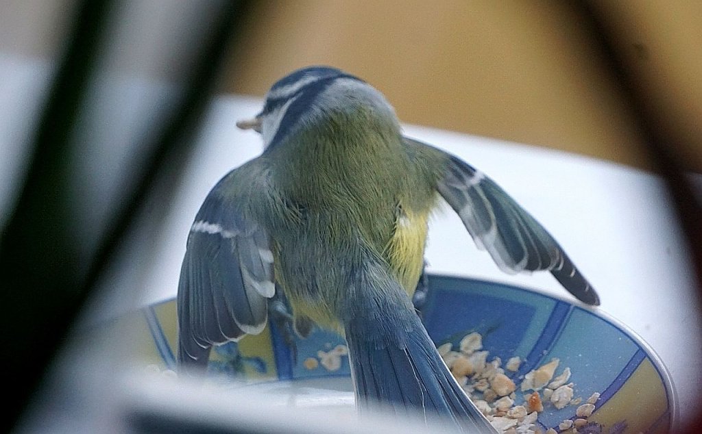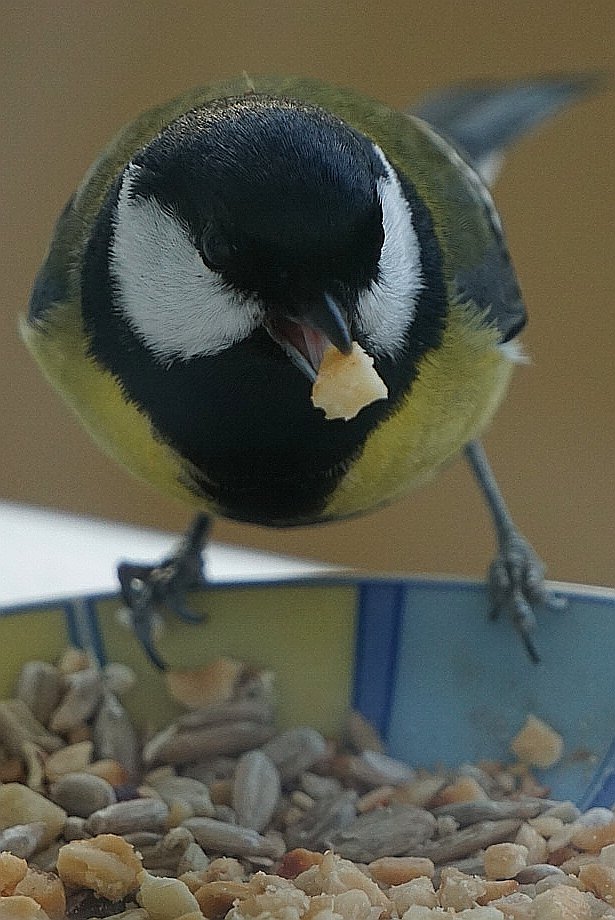 Auf den Bildern sehen Sie meine dankbaren kleinen Freunde, die täglich fröhlich zwischen Baum und Fensterbank herumtollen und das Futter gern annehmen.