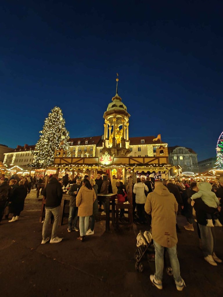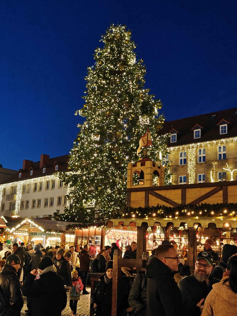 Der Magdeburger Weihnachtsmarkt hat schon am 22. November begonnen und endet am 29. Dezember. Am Samstagnachmittag strömten tausende Menschen in die Geschäfte und auf dem Weihnachtsmarkt. Vor dem Dom erstrahlte die Lichterwelt.
