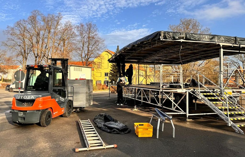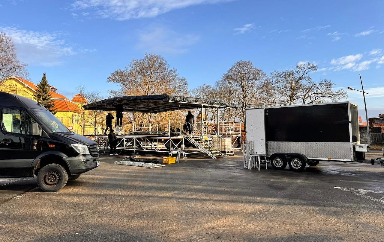 Seit den frühen Morgenstunden rollen die ersten Lkw über den Jahnplatz in Bad Langensalza, um das Live-Event "Weihnachten bei uns" vorzubereiten. Die ersten Bühnenteile stehen bereits und die Vorfreude steigt. Am Freitagabend reichen sich hier prominente Künstler gegenseitig das Mikrofon in die Hand …