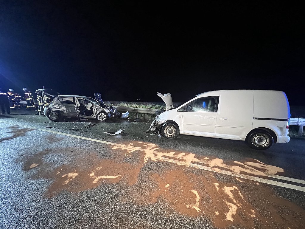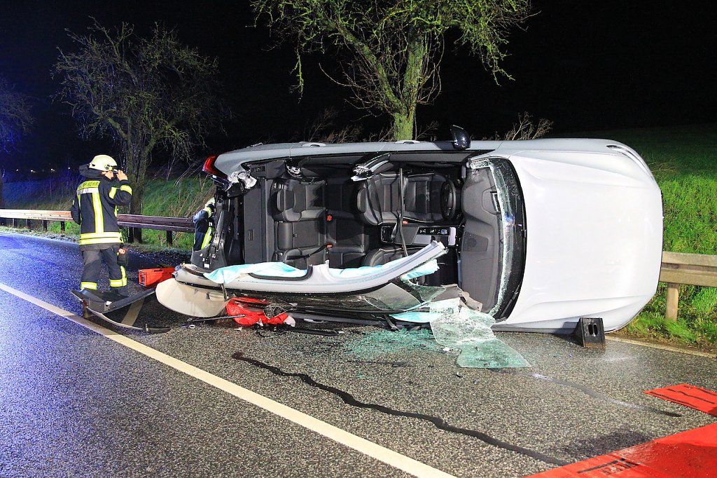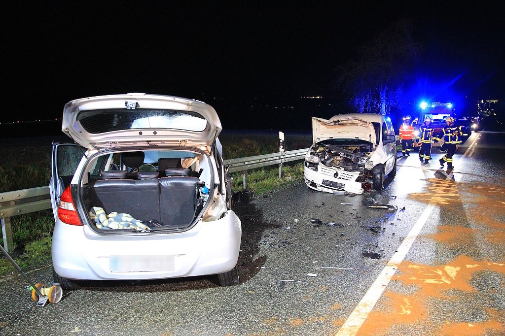 Die beiden Fahrzeuginsassen mussten durch die Feuerwehr aus ihrem Fahrzeug befreit werden. Hierfür musste das Dach des PKWs abgetrennt werden. Der Hyundai kam im weiteren Verlauf des Unfalls quer auf die Fahrbahn und kollidierte mit einem weiteren im Gegenverkehr befindlichen PKW. Der VW Caddy prallte in die Beifahrerseite des Hyundai. Die beiden Insassen im Hyundai mussten ebenfalls aus ihrem PKW befreit werden. Sie wurden bei dem Unfall schwer verletzt.