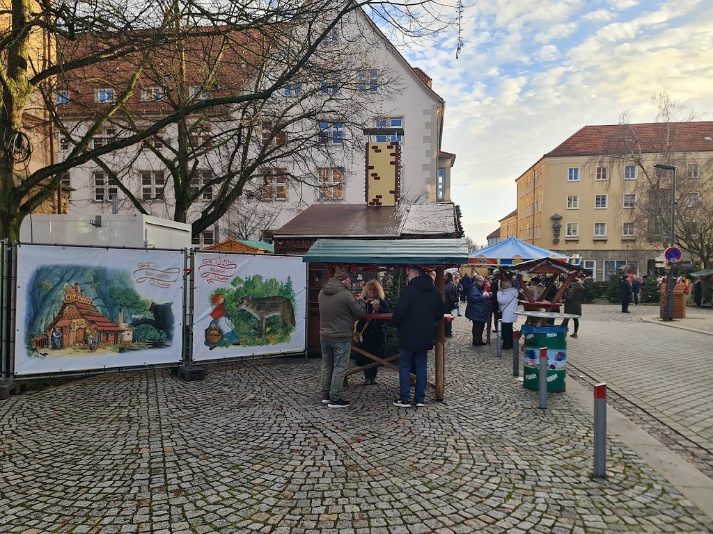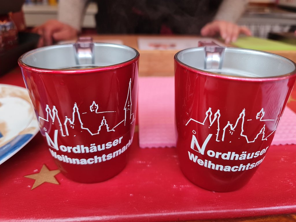 Wir laufen weiter in Richtung Rathausplatz. Der städtische Weihnachtsmarkt. Hier herrscht heute in den Nachmittagsstunden ein reges Treiben. Annett und Rene aus Bautzen waren beim Weihnachtsmarkt dabei: Wir mögen das Heimische und Gemütliche an diesen kleinen Weihnachtsmärkten wie bei diesem Nordhäuser Weihnachtsmarkt. In Quedlinburg waren wir gestern, aber da sind Massen unterwegs und man schiebt sich gefühlt nur gegenseitig durch die Gegend.