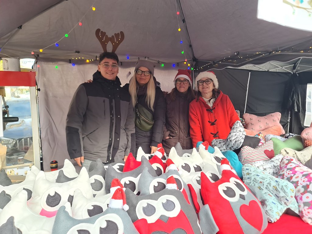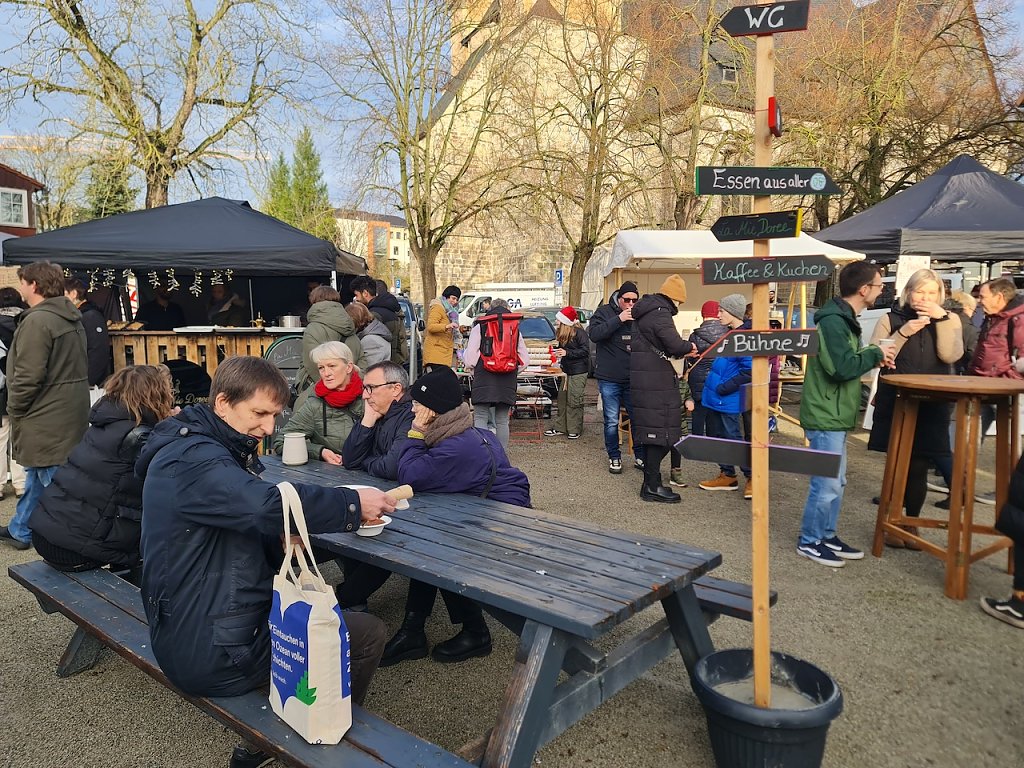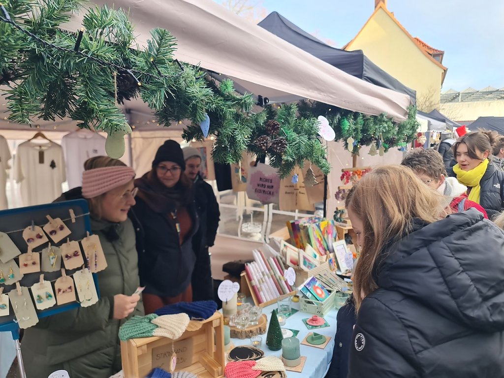 Gleich um die Ecke am Blasiikirchplatz ist die nächste Zwischenstation. Das Bündnis Nordhausen zusammen hat ebenfalls einen kleinen Markt organisiert, auf dem man selbstgenähte Kissen für die kalte Jahreszeit und auch Grillspezialitäten erwerben konnte. Im Kirchenladen hatte Familie Tuschy einen kleinen Handwerkermarkt aufgebaut, der guten Zulauf bekam. Weihnachstmann Jannis, der an der Fachhochschule Soziales studiert, konnte hier heute für einen guten Zweck Freude in die Herzen der Menschen bringen.