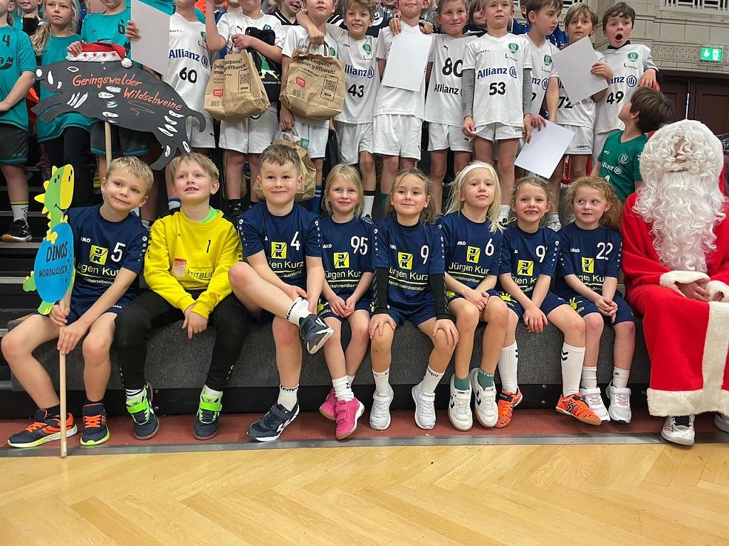Nach Leipzig reiste der Jahrgang 2017/18. Das Turnier in der Messestadt umfasse 21 Mannschaften. Die Ergebnisse an der Anzeigetafel waren für alle Teams zwar sichtbar, dennoch nicht entscheidet. Spiele, Spiele und nochmals Spiele und im Umfeld Spaß. Die kleine und große Handballfamilie konnte gemeinsam das Handballsportabzeichen ablegen, sich auf der Hüpfburg tummeln und viele andere Sachen neben dem Parkett erleben. Auch der Weihnachtsmann schaute vorbei und überreichte seine Geschenke.