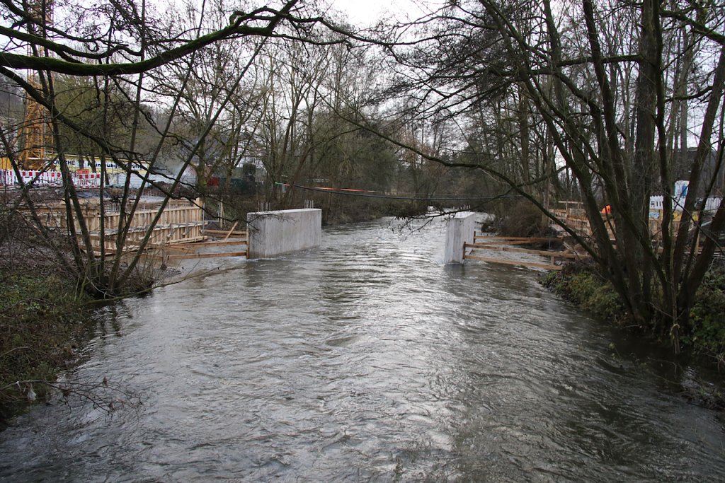 Man sieht aber das es vorwärts geht, sagt Oberbürgermeister Kai Buchmann am Nachmittag und bedankte sich bei allen am Bau beteiligten Unternehmen und den Kollegen vom Bauamt. Die haben ein paar Meter weiter noch alle Hände voll zu tun, denn die Fertigstellung der beiden Brückenbauten hinüber zur B4 wird sich noch eine Weile hinziehen. Die kleinere Brücke sei weitestgehend fertiggestellt, nur der Belag und das Geländer fehlten noch, wie schnell man nun mit der größeren Brücke vorankomme, hänge auch vom Winter ab, heißt es aus dem Bauamt der Stadt.