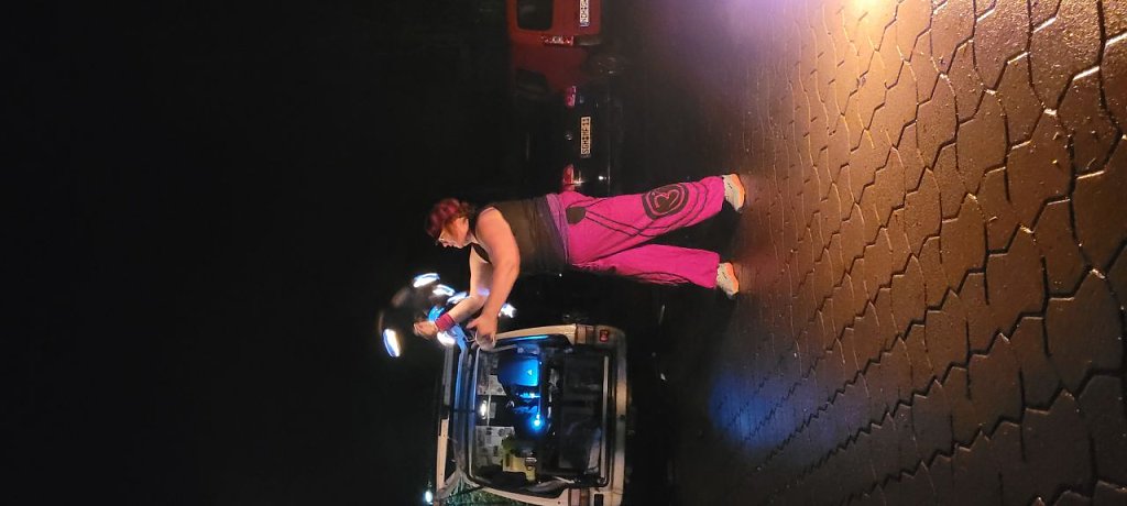 Draußen auf dem Gelände der Freilichtbühne konnten die Gäste die festlich geschmückten Pavillons als Unterstellmöglichkeit nutzen, um bei Glühwein und köstlichem Gaumenschmaus den weihnachtlichen Klängen vom Posaunenchor zu lauschen. Ein weiteres Highlight bot uns die Feuershow mit Steffi Böttcher von den Brandstiftern.