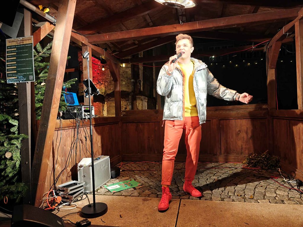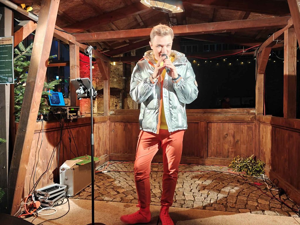 Bei Nieselregen auf dem Weihnachtsmarkt waren doch erstaunlich viele Besucher. Kevin Neon trat auf und begeistertet seine Fans. Einer war extra aus Berlin angereist um den jungen Sänger zuzujubeln. Zum Schluß begab ich mich nochmal in die Unterstadt in de Fürstenhof.