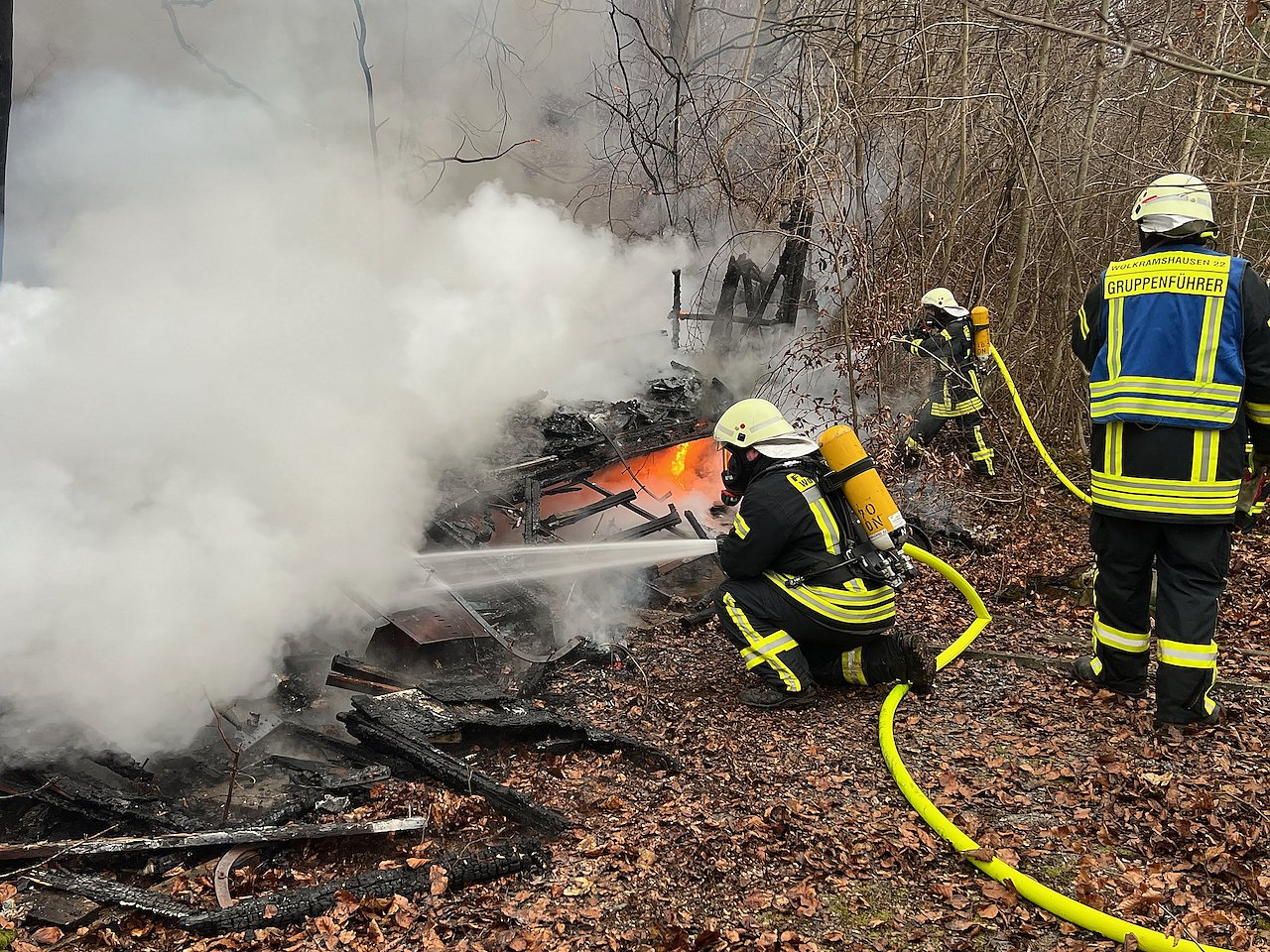 Beim Eintreffen der Feuerwehr stand der Bauwagen bereits in Vollbrand. Um an den Brandort zu gelangen mussten die Einsatzkräfte unter anderem mit der Kettensäge arbeiten. Seit einigen Jahren stehen die Bungalows auf dem Gelände des Campingplatzes leer. Scheiben sind eingeschlagen, Unrat liegt in den ehemaligen, von Campern genutzten Bungalows.