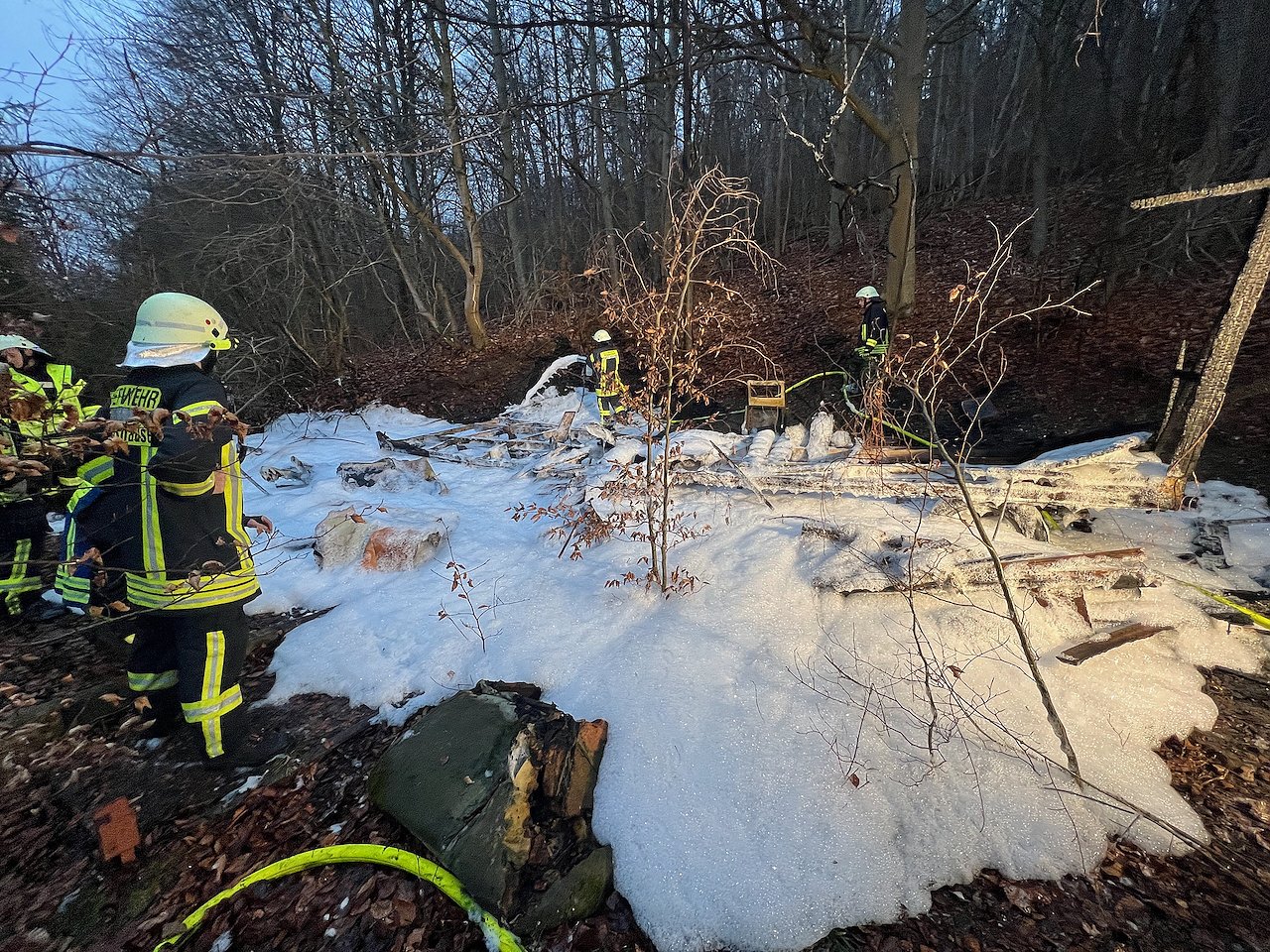 Bis heute. Einen Tag vor Heiligabend. Gegen 14:40 Uhr alarmierte die Rettungsleitstelle die Freiwilligen Feuerwehren aus Hainrode und Wolkramshausen. Schnell waren die Einsatzkräfte vor Ort. Unwegsames Terrain erschwerte den Einsatz, Wasser konnte aus einem Löschteich entnommen werden. Retten konnte die Feuerwehr nichts mehr.