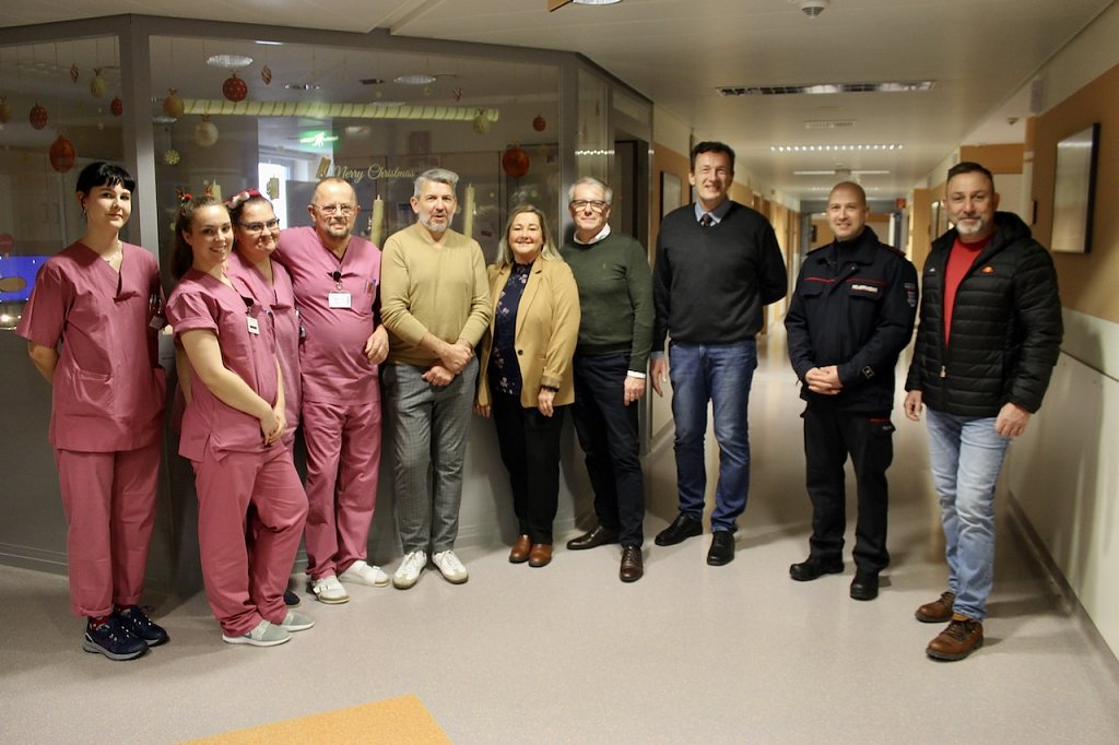 Beginnend in der Abteilung Ambulantes Operieren, in die wegen der Baumaßnahmen im Haus momentan auch die Notfallambulanz untergebracht ist, ging es durch die einzelnen Bereiche. Alle waren angetan von der schmucken neuen OP-Abteilung, die von Sommer 2023 bis Oktober 2024 saniert worden war. Jens Kopp erläuterte, wie hier die Strukturen angepasst wurden, die Ver- und Entsorgung von Sterilgut organisiert und die Baumängel behoben wurden. Jetzt entspricht die Abteilung exakt allen gesetzlichen Vorgaben und hält drei OP-Säle vor.