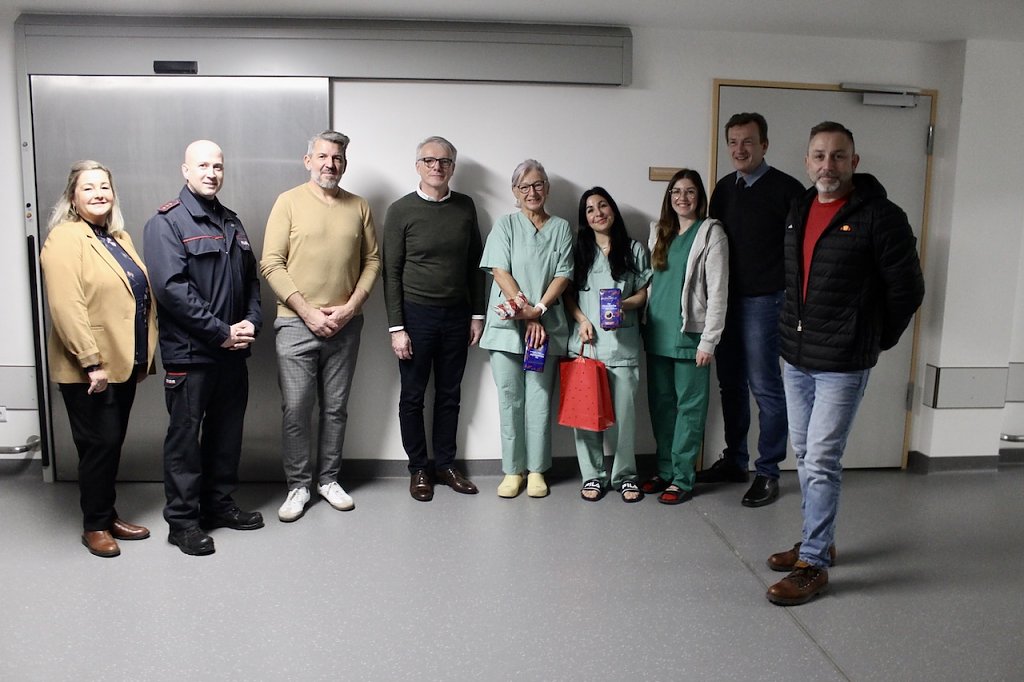 Kurz nach 11 Uhr trafen sich der frisch vermählte Bürgermeister Matthias Reinz nebst seinem Stadtbrandmeister Steven Dierbach mit Landrat Thomas Ahke, der schon zwölf Abteilungen des Mühlhäuser Klinikums besucht hatte, dem Geschäftsführer der Langensalzaer Klinikums Jens Kopp und dem Ärztliche Direktor beider Kliniken, Prof. Dr. Johannes Wölfer, vor den Toren des Klinikums. Empfangen und geführt von der Bereichsleiterin Pflegedienstleistungen, Schwester Nicol, begaben sich die Herren auf die Stationen des Hauses, wo sie den diensttuenden Schwestern und Pflegern kleine Geschenke überreichten, vor allem aber ihren Dank für die unermüdliche Arbeit und Hilfsbereitschaft des Klinikum-Personals zum Ausdruck brachten.