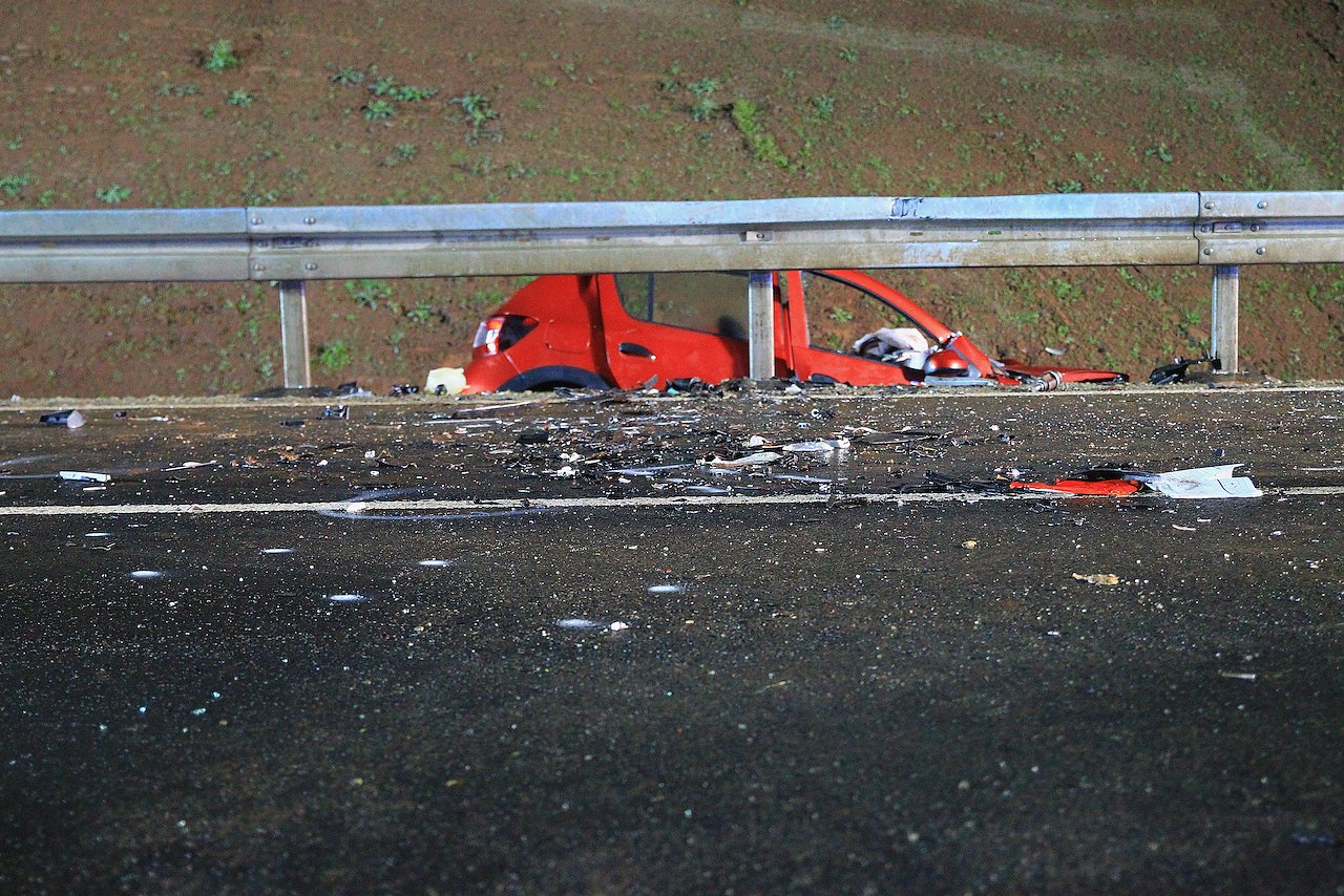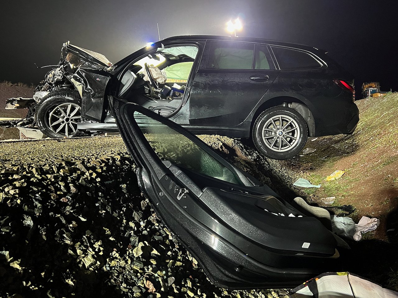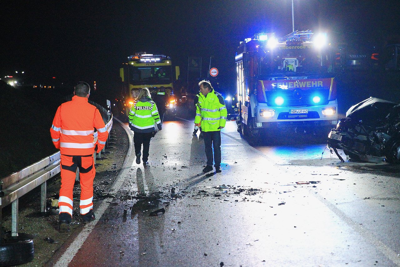 Aufgrund der Wucht des Aufpralls wurde der Dacia zunächst über die Leitplanke geschleudert und kam letztlich im Straßengraben zum Stehen. Alle Insassen (jeweils zwei) wurden dabei verletzt und zum Teil in ihren Fahrzeugen eingeklemmt. Mit Hilfe der Feuerwehr und den Rettungskräften konnten die Verletzten geborgen und in umliegende Krankenhäuser verbracht werden. Einer der beiden Hunde erlag noch vor Ort seinen Verletzungen, während der andere Mischlingshund, ein hellfarbener Dackel mit reflektierendem Geschirr, die Unfallstelle verließ und derzeit unbekannten Aufenthaltes ist.