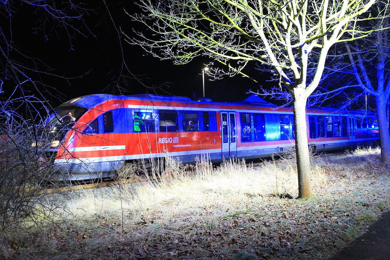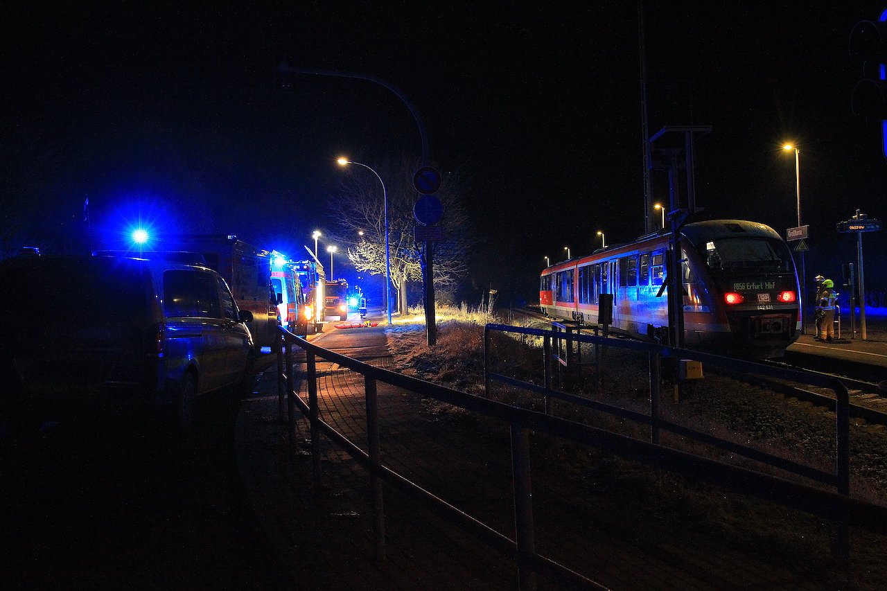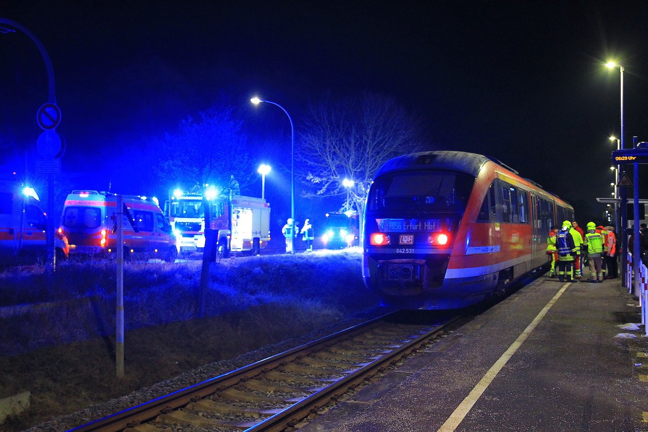 Am Haltepunkt Großfurra wurde heute in den frühen Morgenstunden ein Mann im Gleis liegend von einer Regionalbahn erfasst. Er wurde gerettet, erlitt aber mehrere Frakturen...