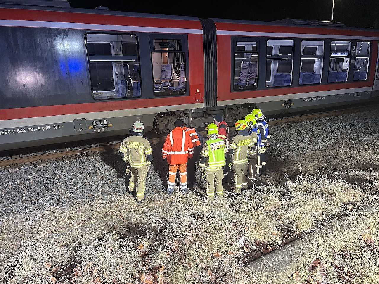 Die eingleisige Strecke wurde unmittelbar gesperrt. Im Zug befanden sich zwei Bundeswehrangehörige, die als Ersthelfer tätig wurden. Das männliche Unfallopfer war lebend zwischen Gleisen und Zug eingeklemmt, konnte aber durch den gemeinsamen Einsatz mit den Blaulichtkräften geborgen und schwer verletzt in ein Krankenhaus gebracht werden. Ersten Informationen nach erlitt der 38-jährige Deutsche mehrere Frakturen.